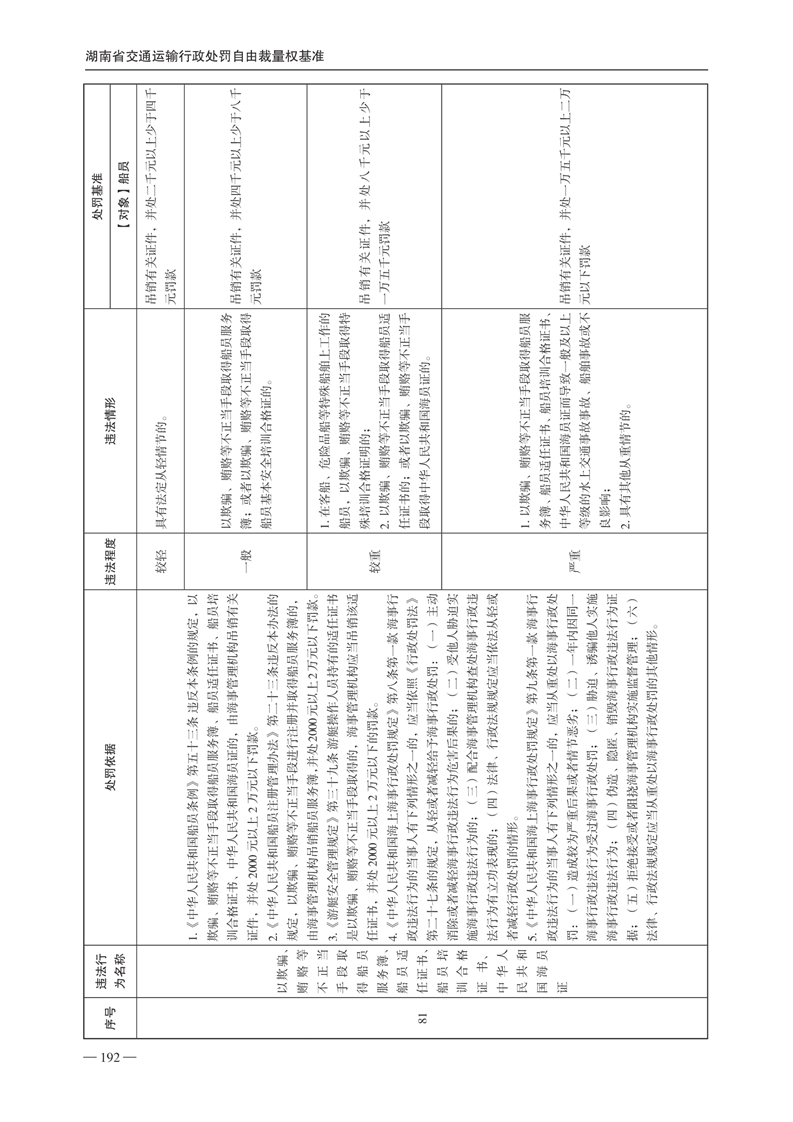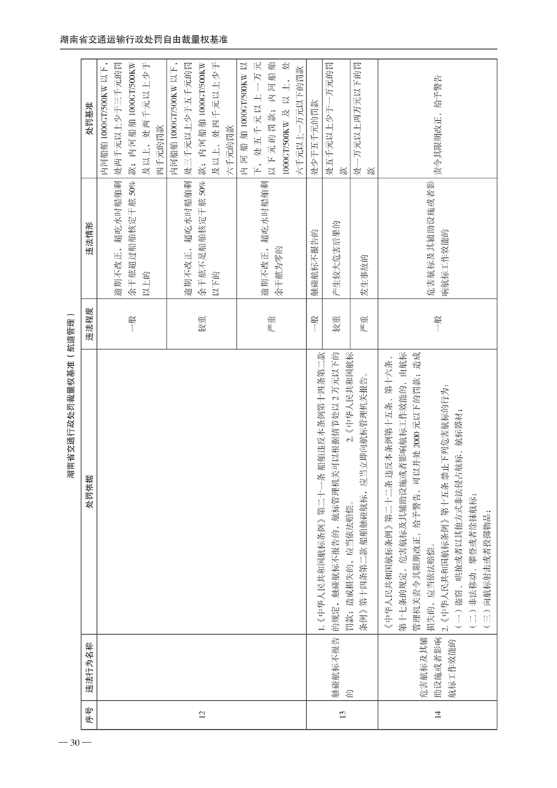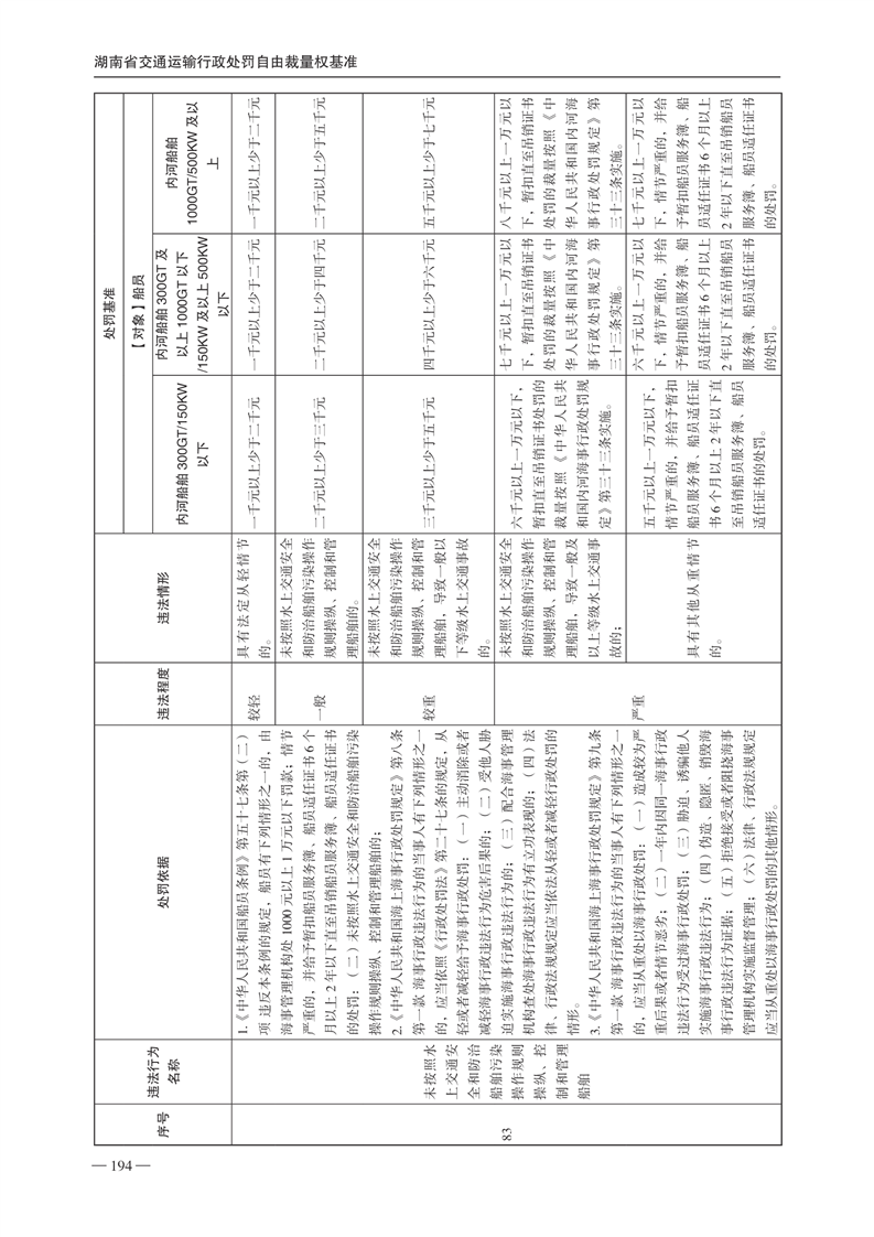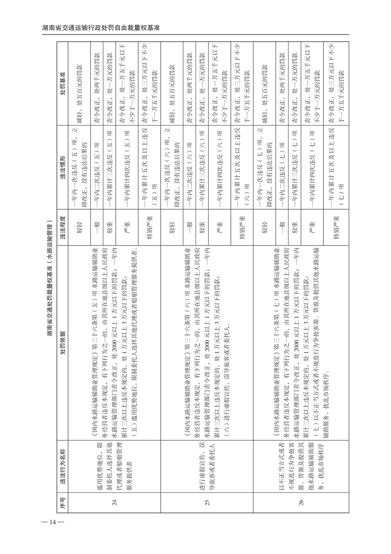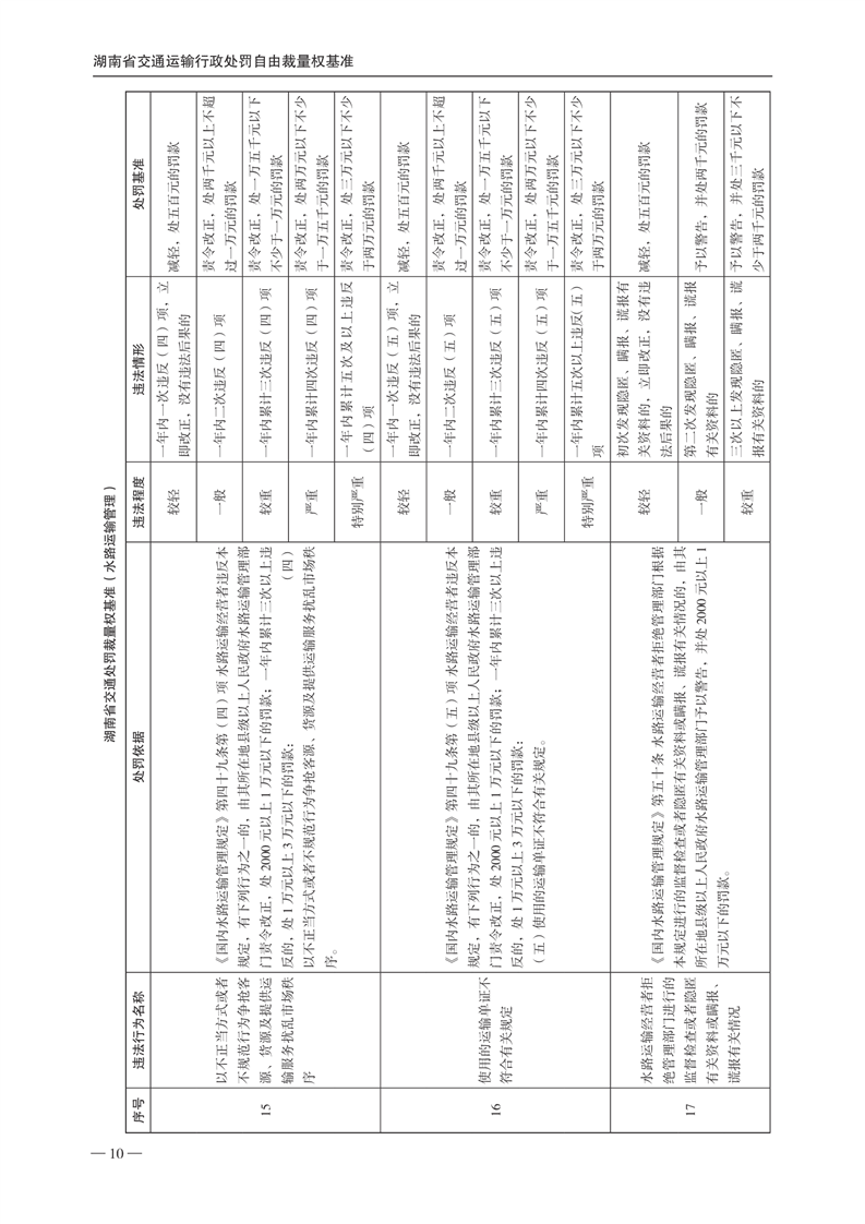 湖南省交通运输行政处罚自由裁量权基准(下册)