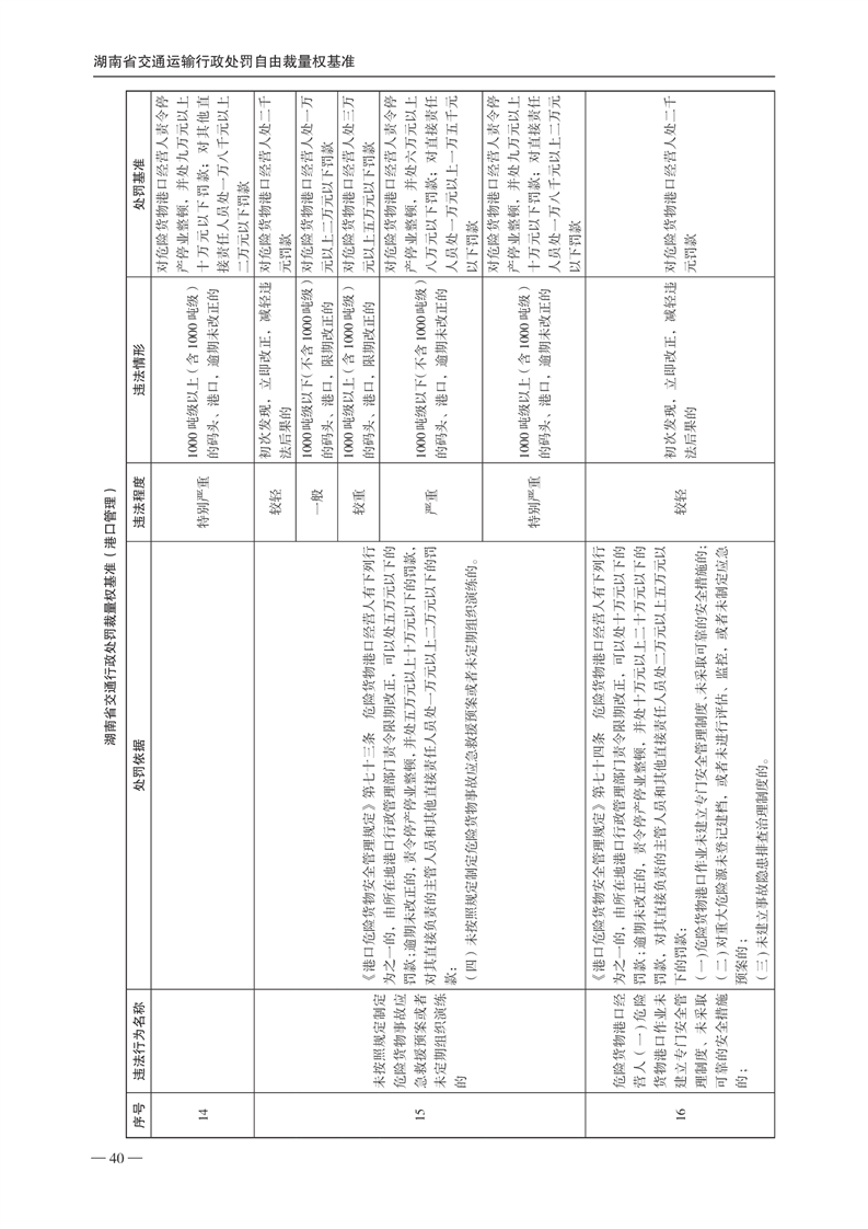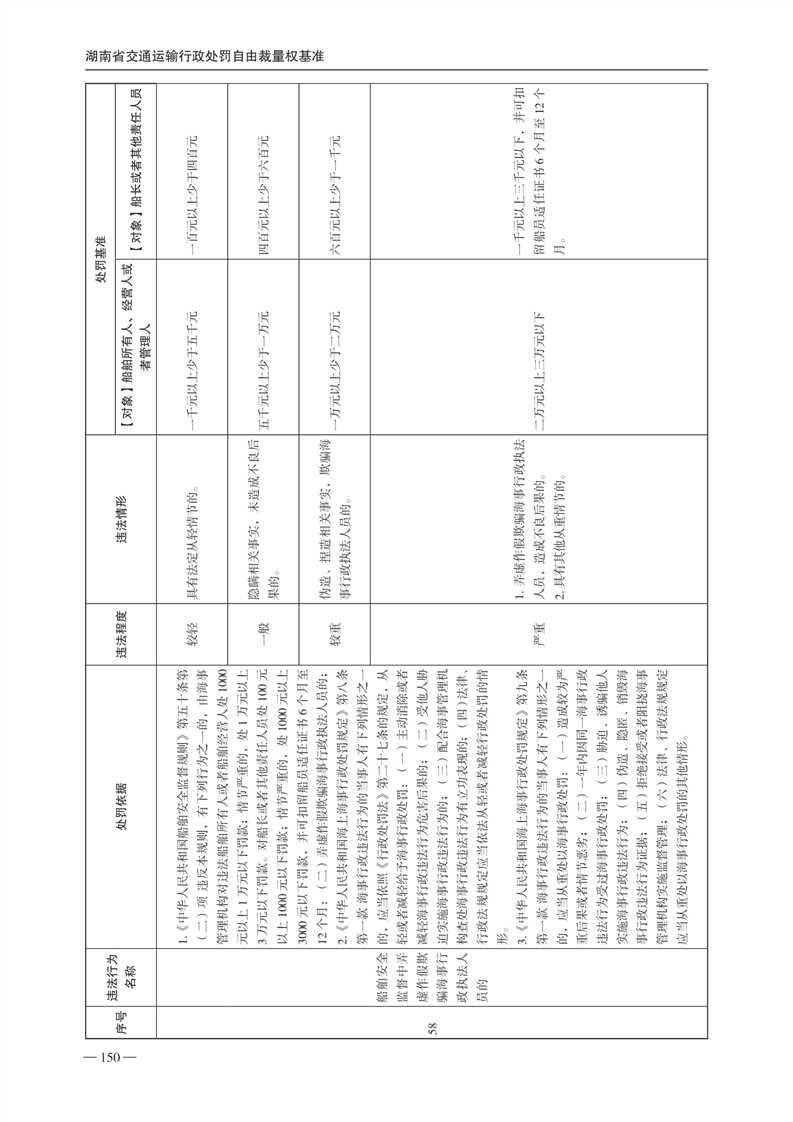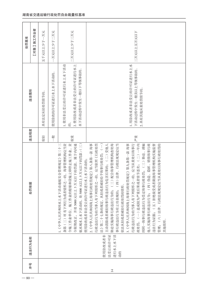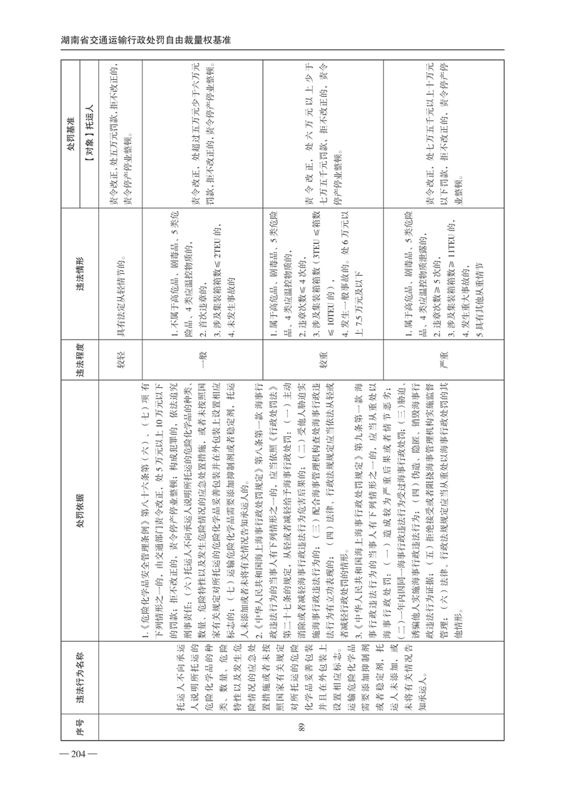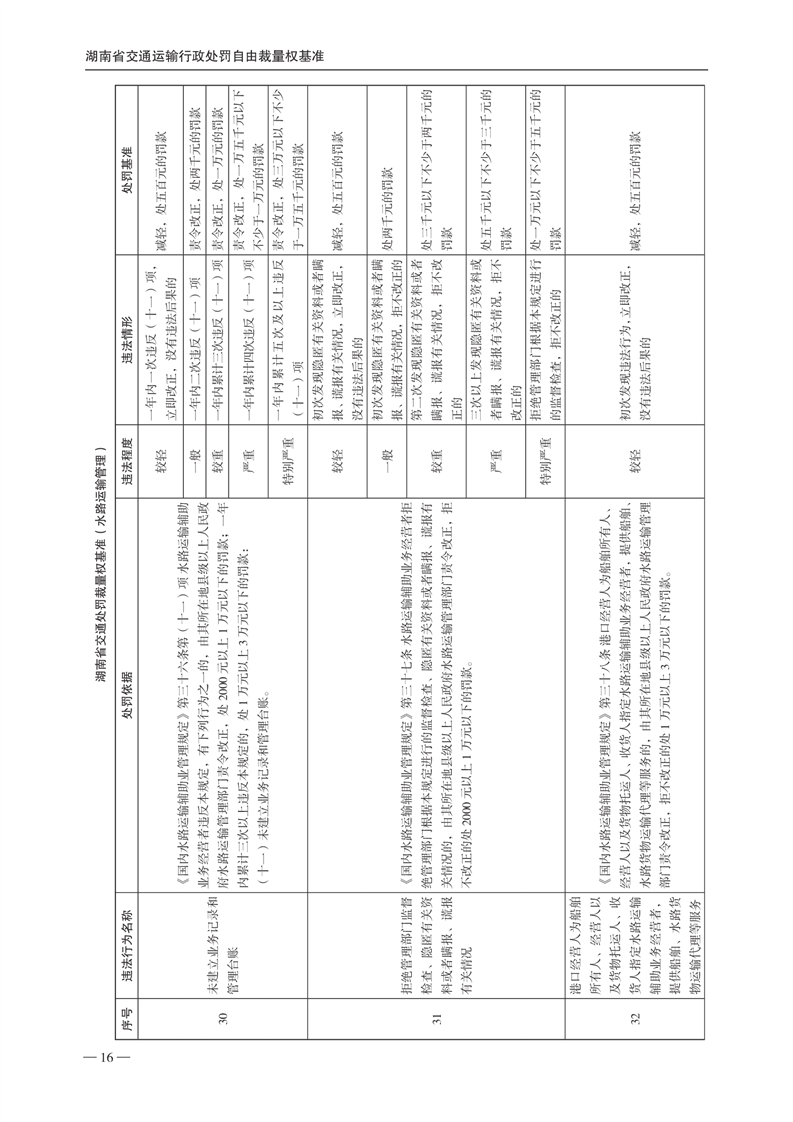 湖南省交通运输行政处罚自由裁量权基准(下册)