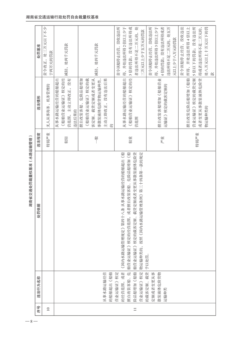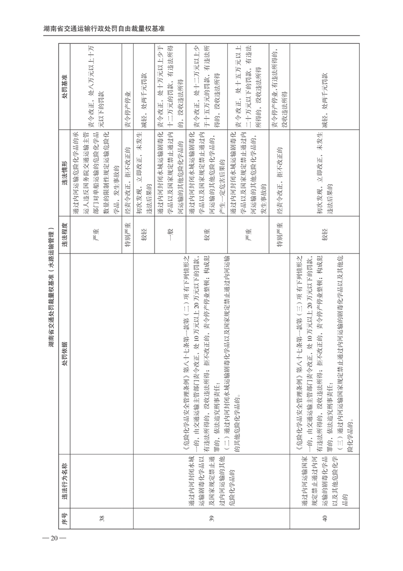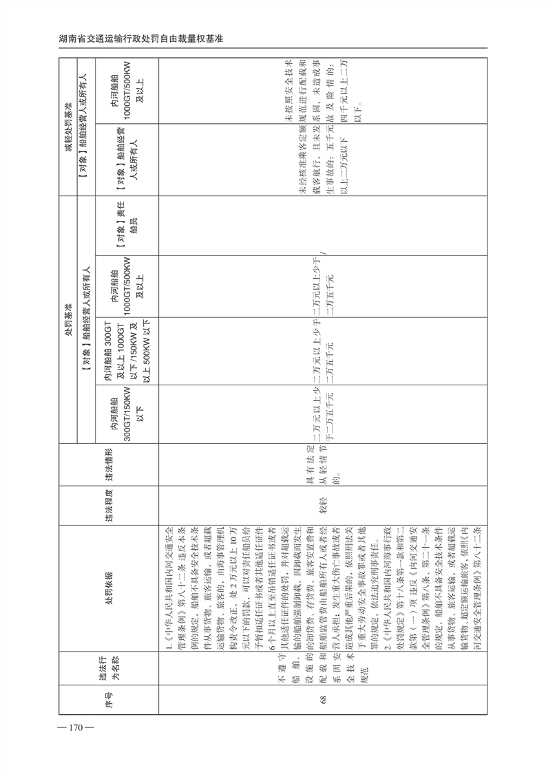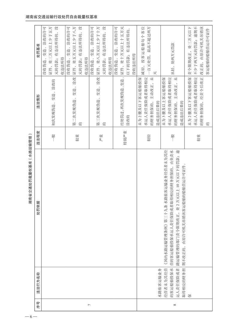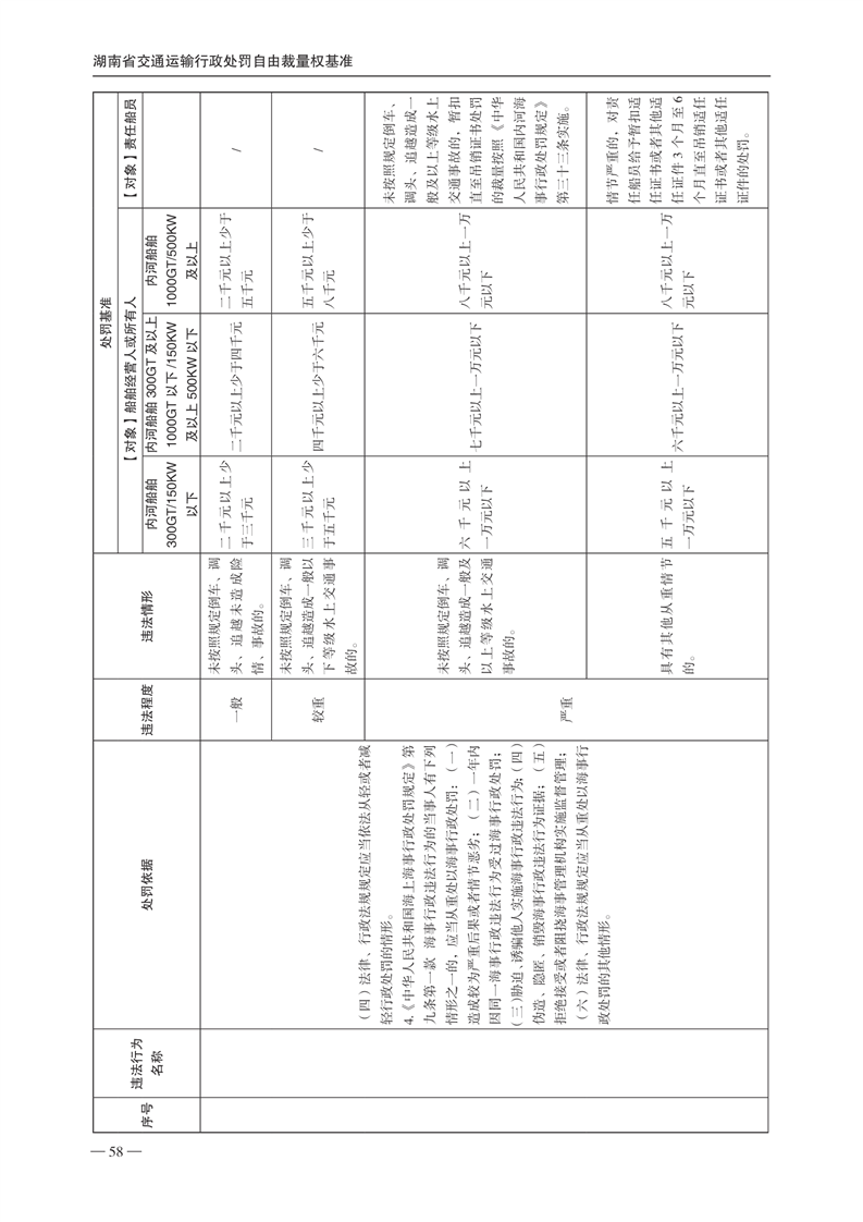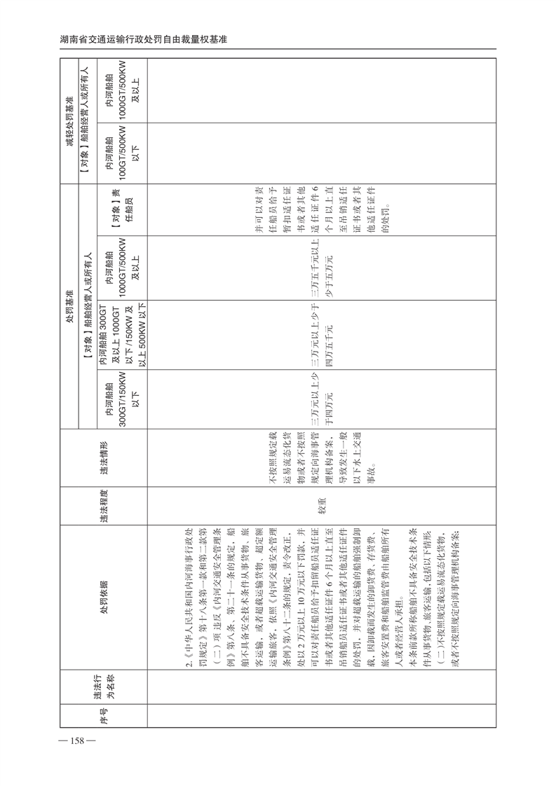 湖南省交通运输行政处罚自由裁量权基准(下册)
