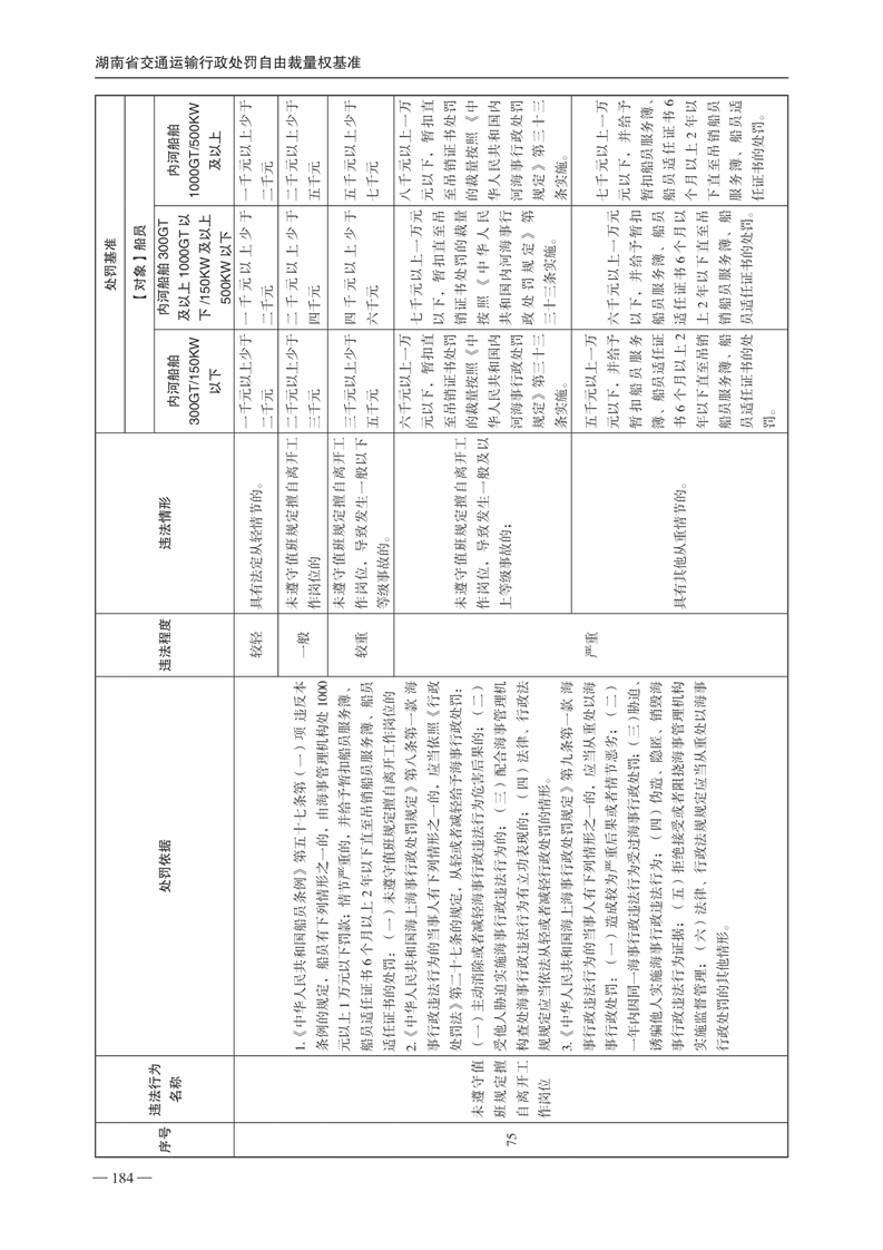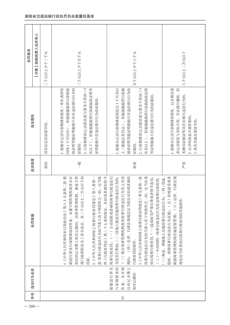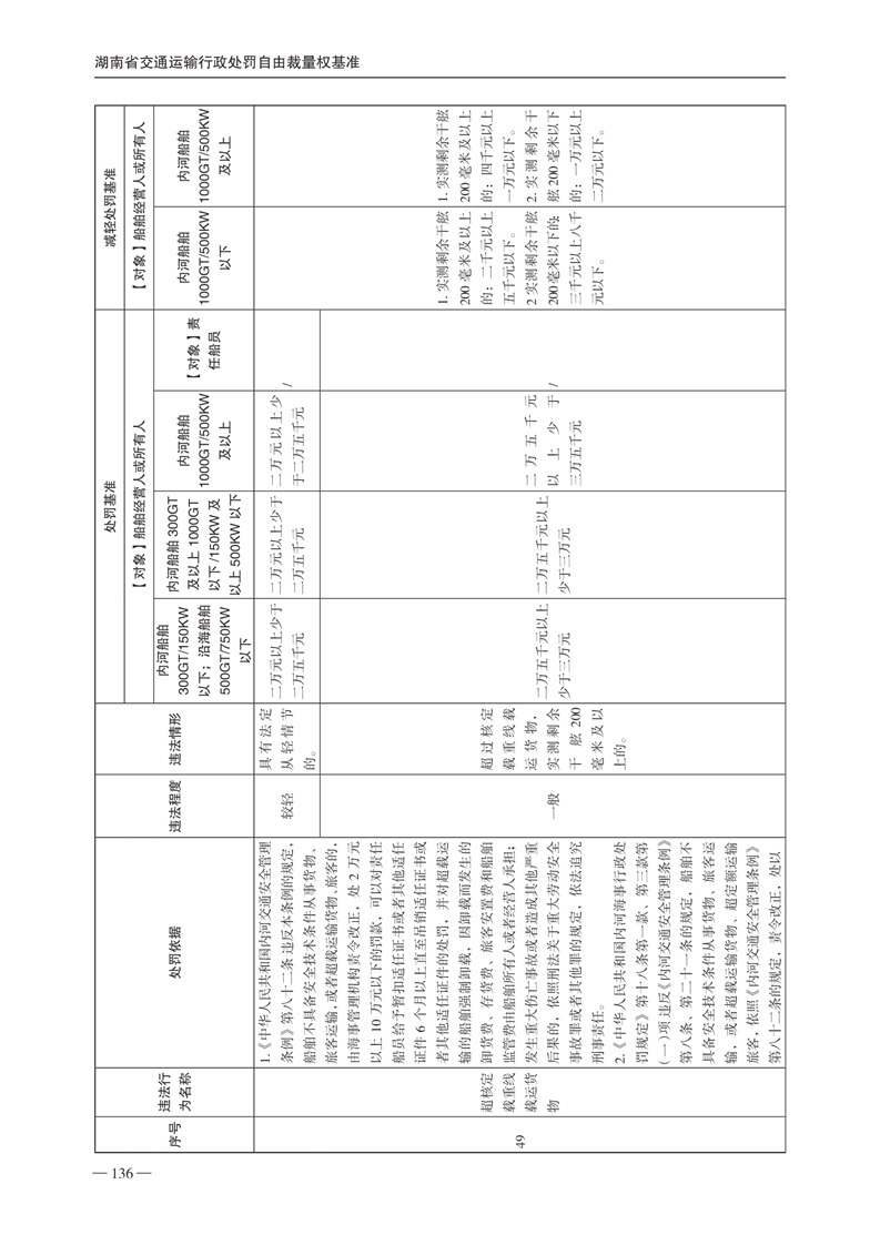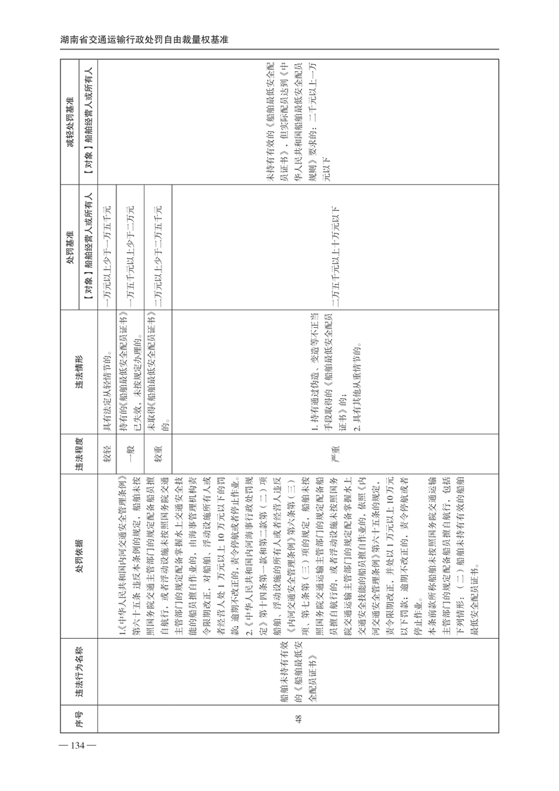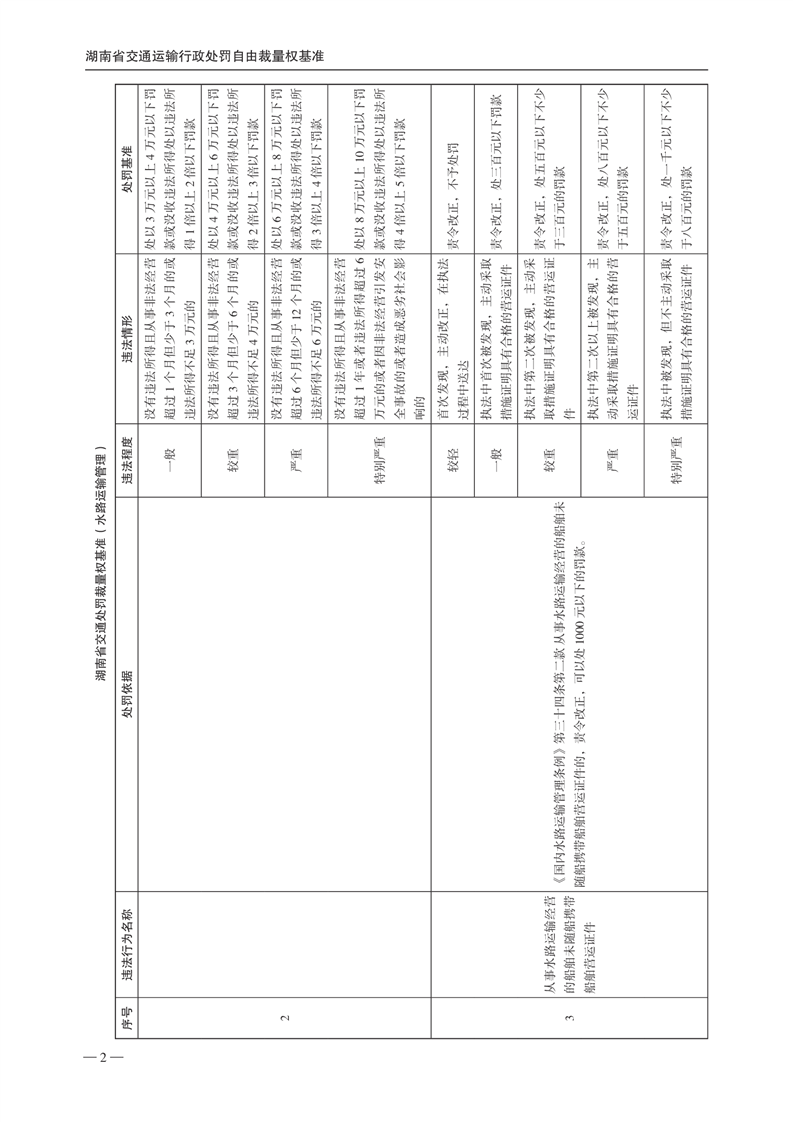 湖南省交通运输行政处罚自由裁量权基准(下册)