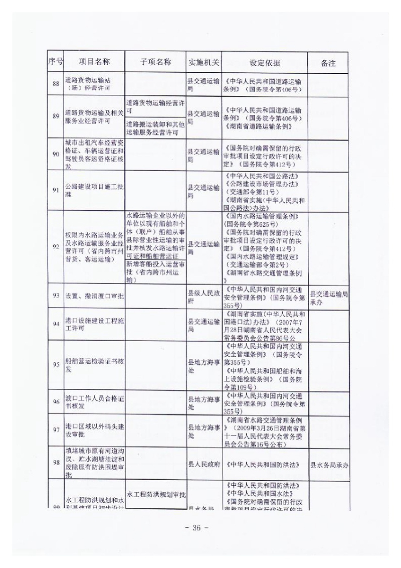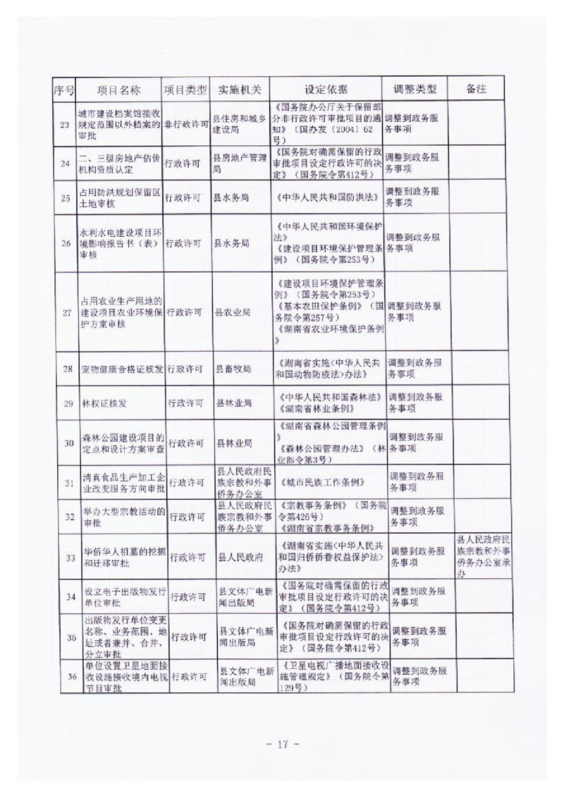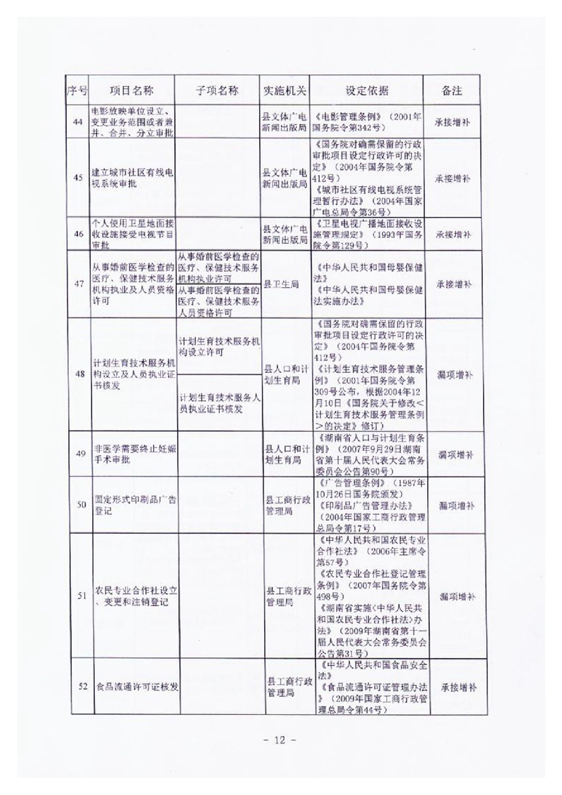 行政审批、许可项目