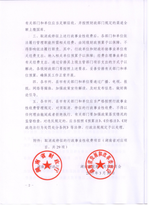 (湘财综[2017]16号)关于清理规范一批行政事业性收费有关政策的通知