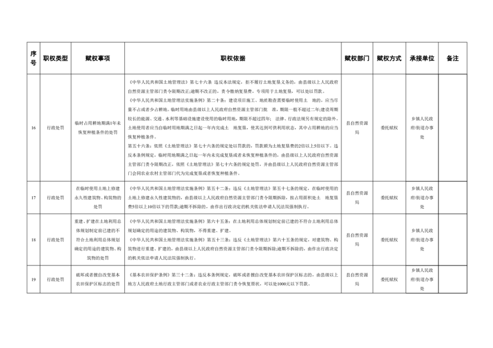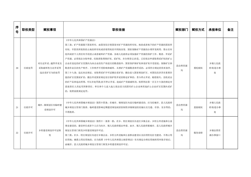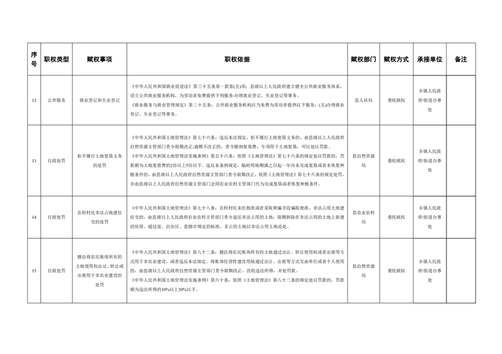 乡级赋权目录
