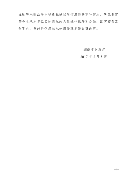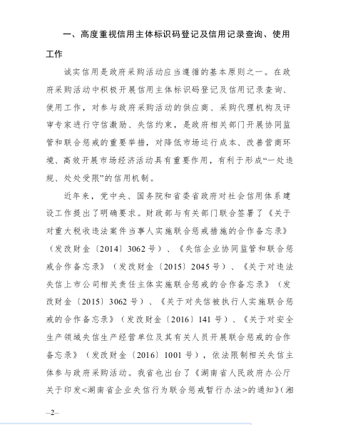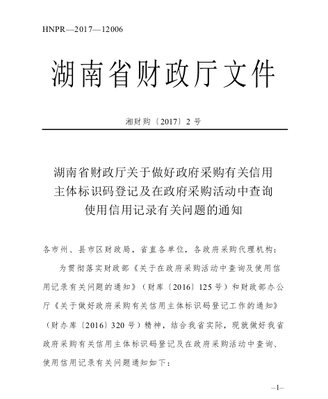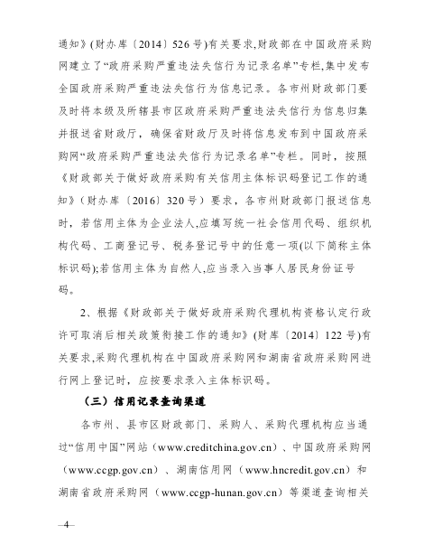 湖南省财政厅关于做好政府采购有关信用主体标识码登记及在政府采购活动中查询使用信用记录有关问题的通知