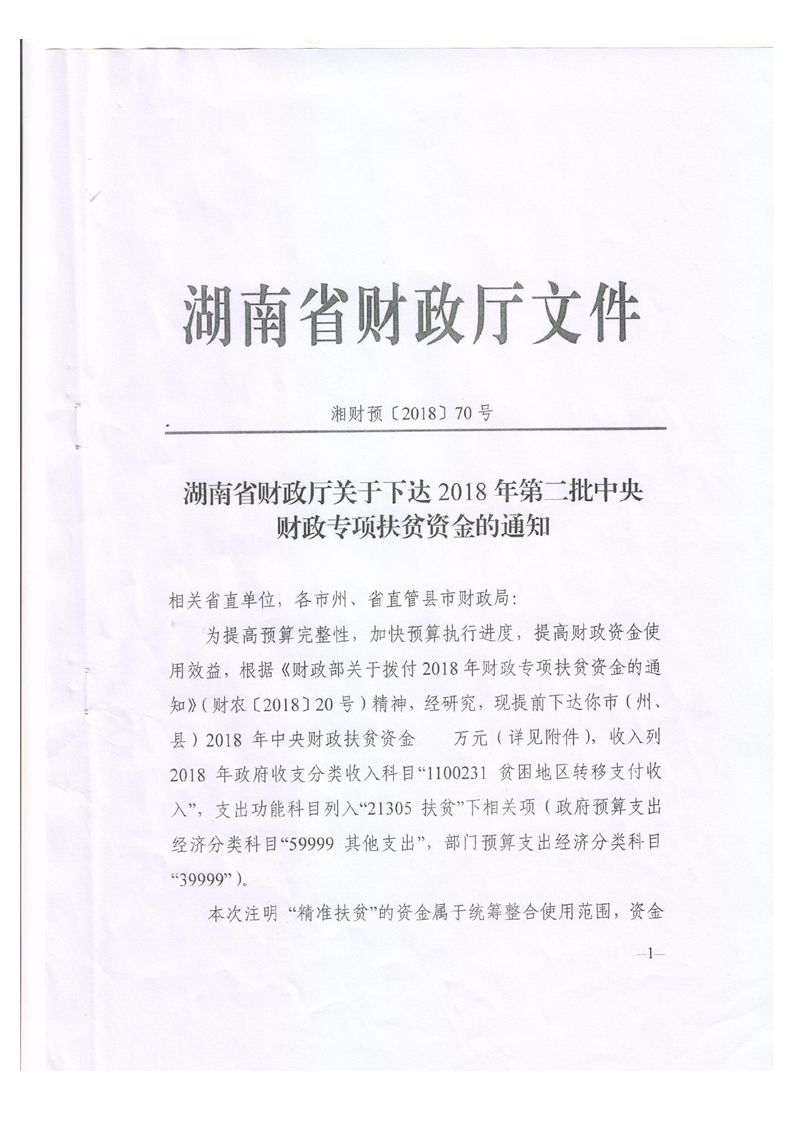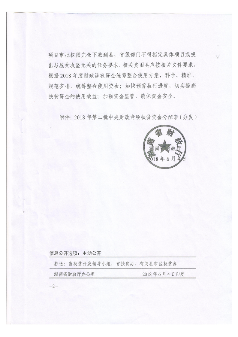关于下达2018年第二批中央财政专项扶贫资金的通知