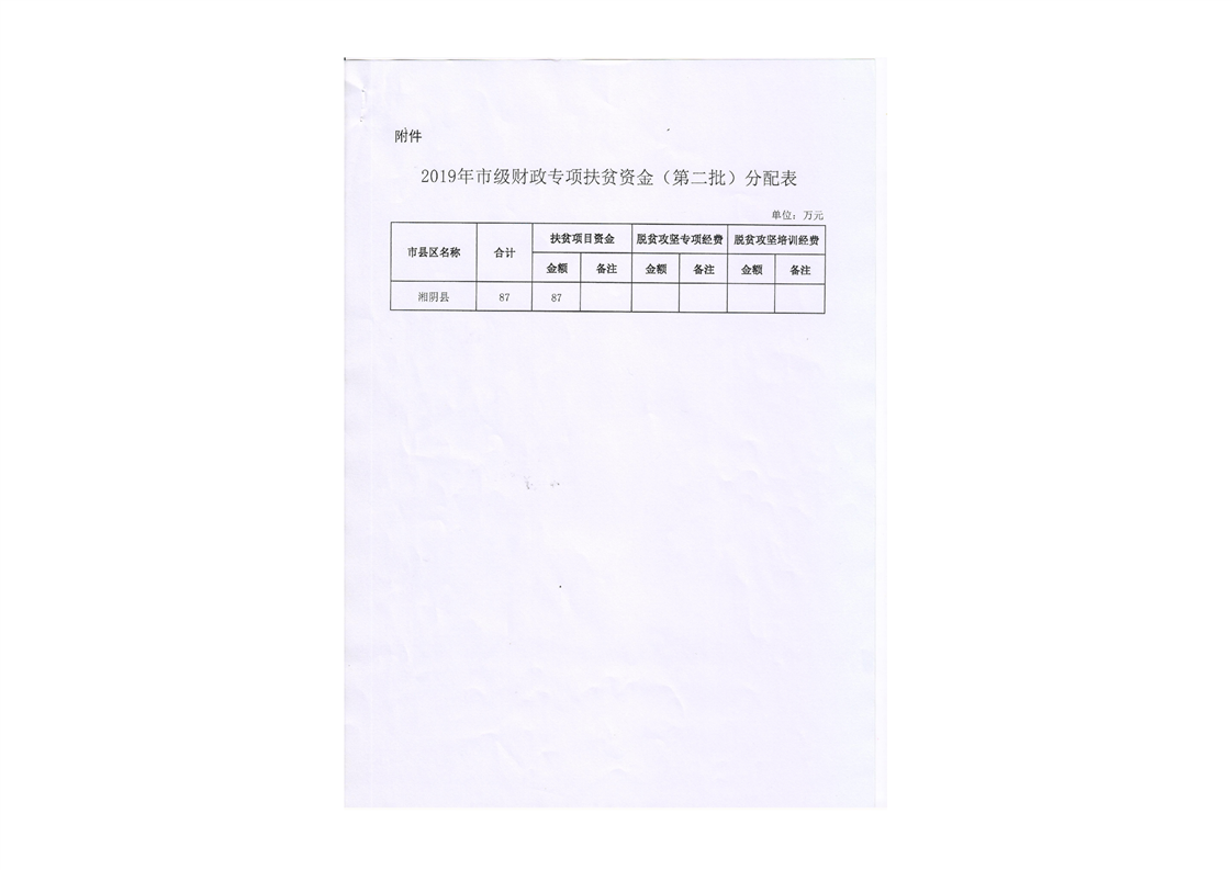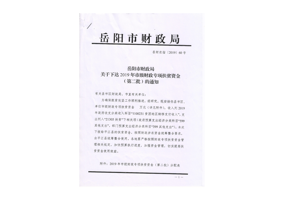 岳阳市财政局关于下达2019年市级财政专项扶贫资金(第二批)的通知