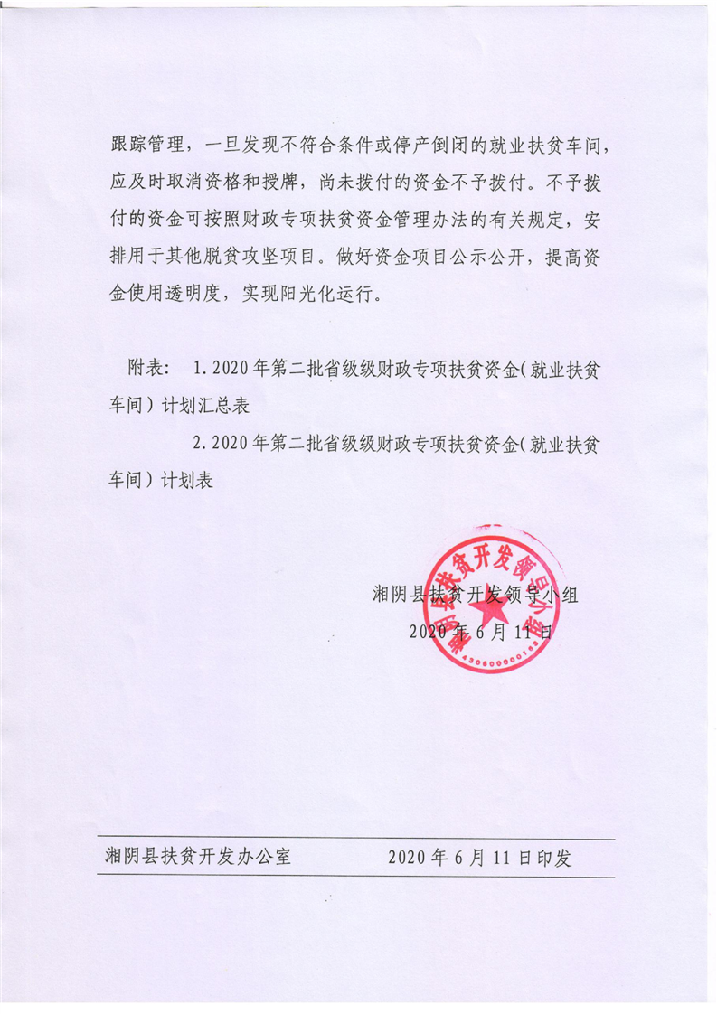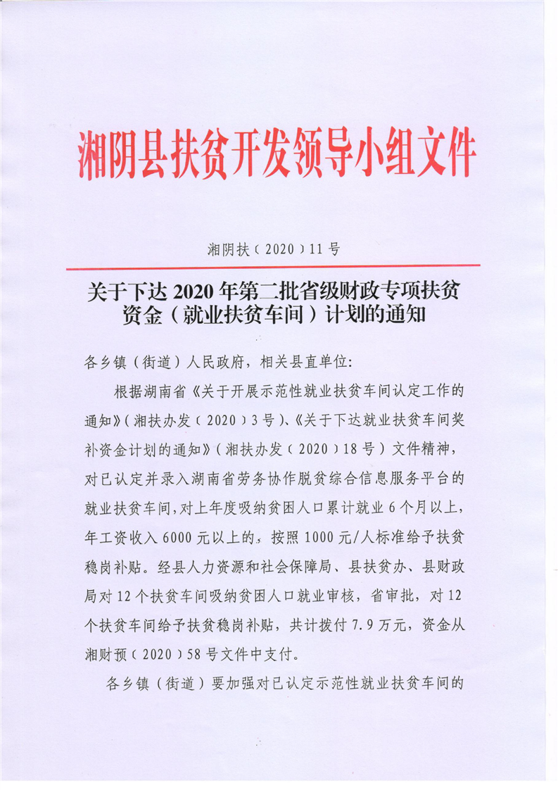 关于下达2020年第二批省级财政专项扶贫资金(就业扶贫车间)计划的通知