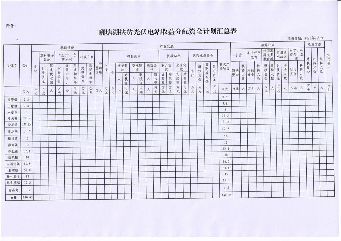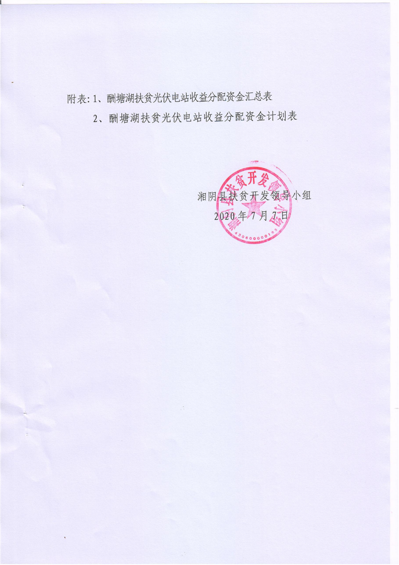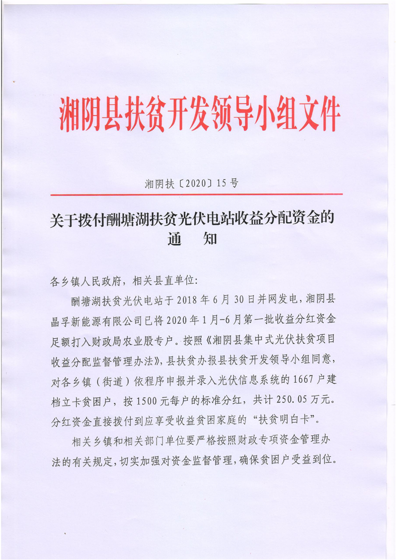 15号关于拨付酬塘湖扶贫光伏电站收益分配资金的通知