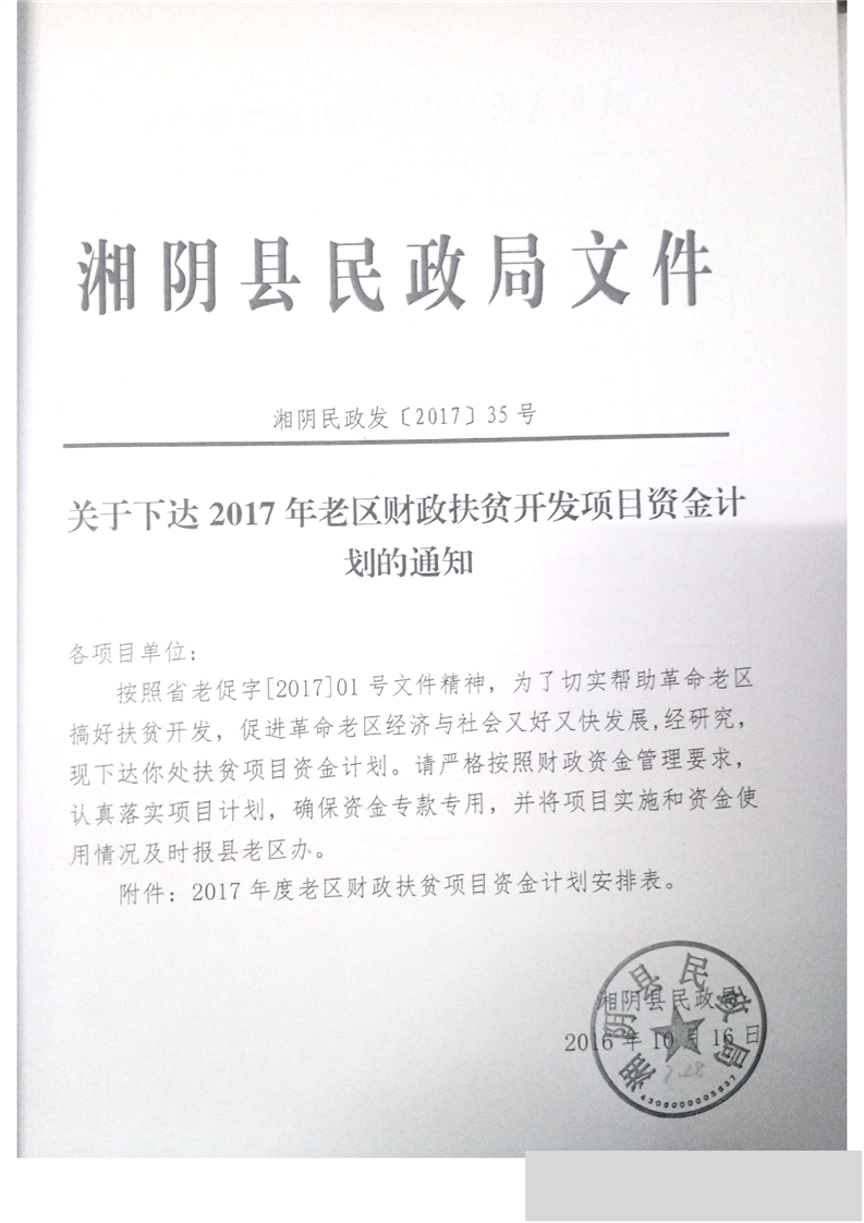 关于下达2017年老区财政扶贫开发项目资金计划的通知