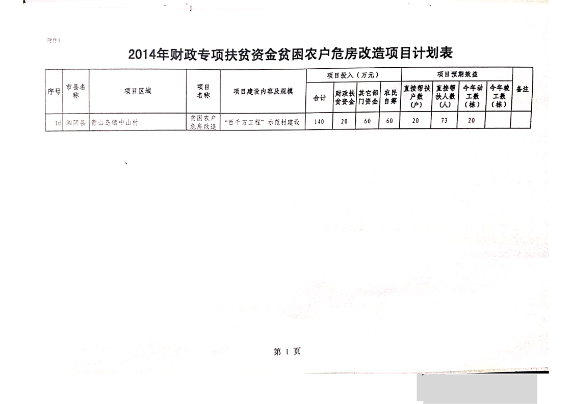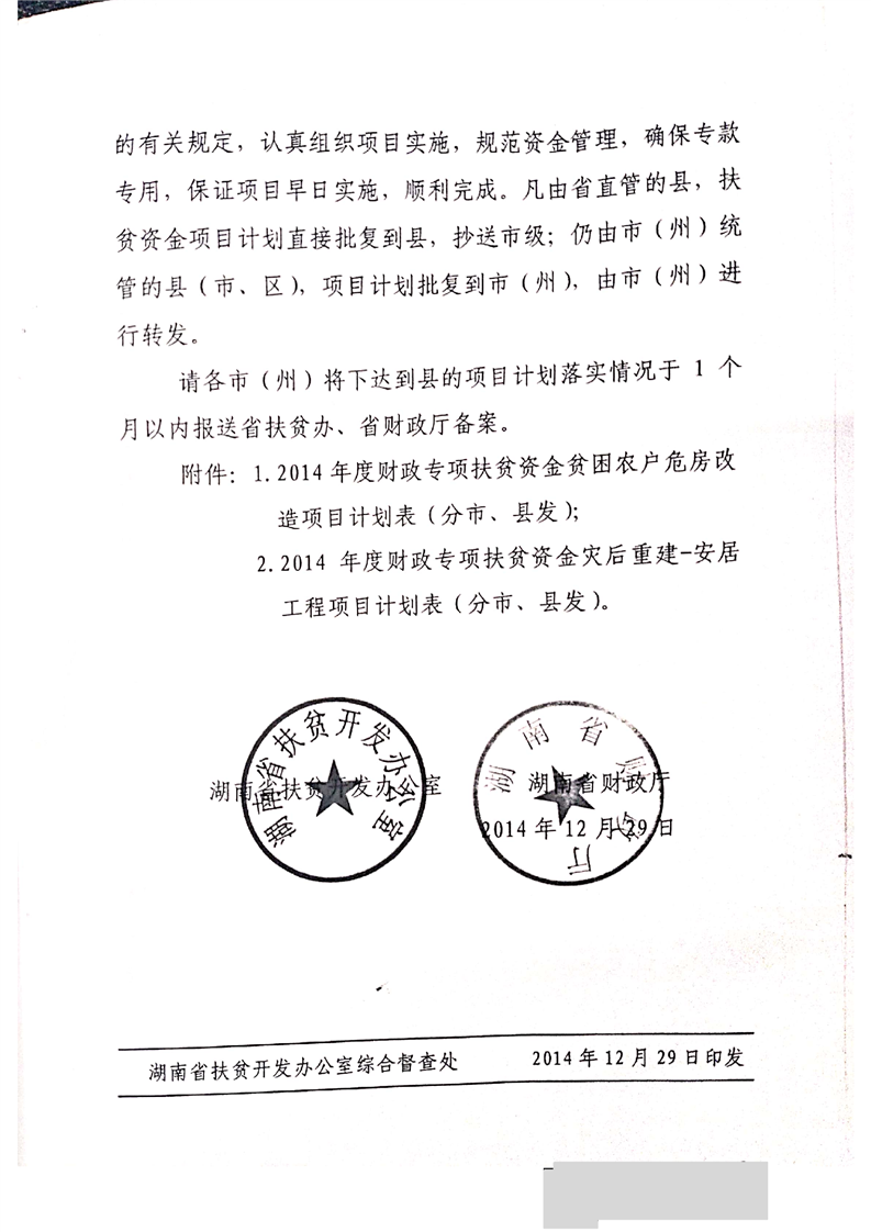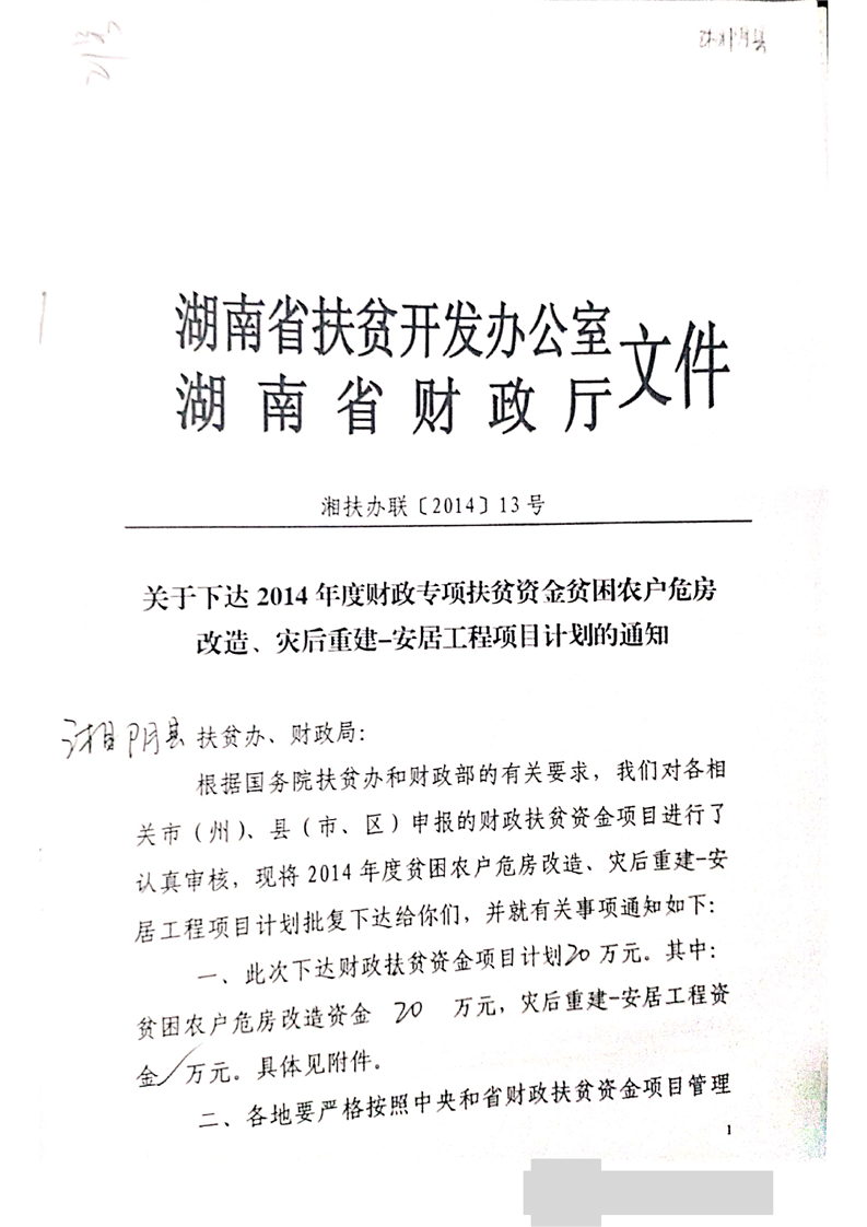关于下达2014年度财政专项扶贫资金贫困农户危房改造、灾后重建-安居工程项目计划的通知