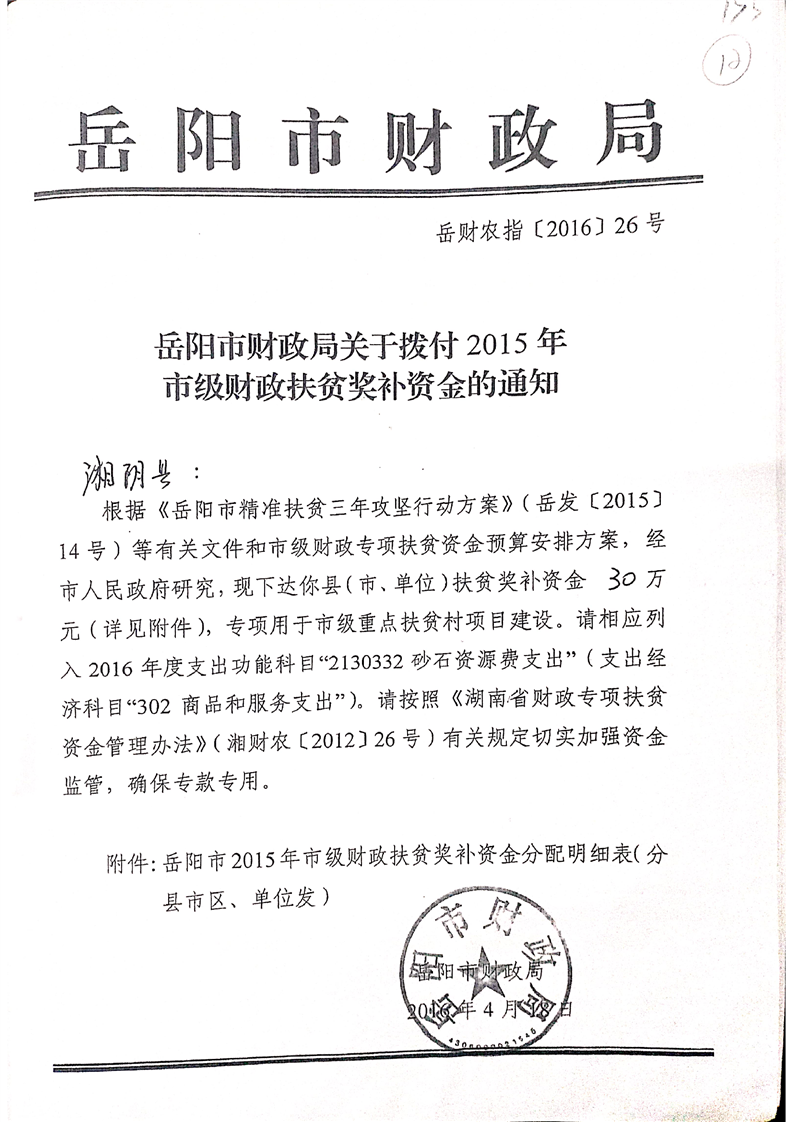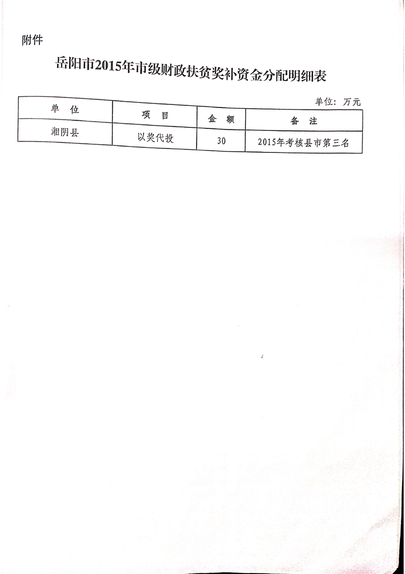 关于拨付2015年市级财政扶贫奖补资金的通知