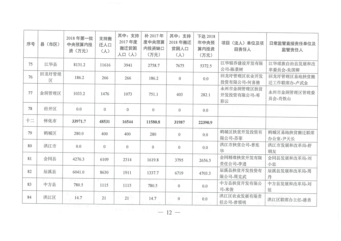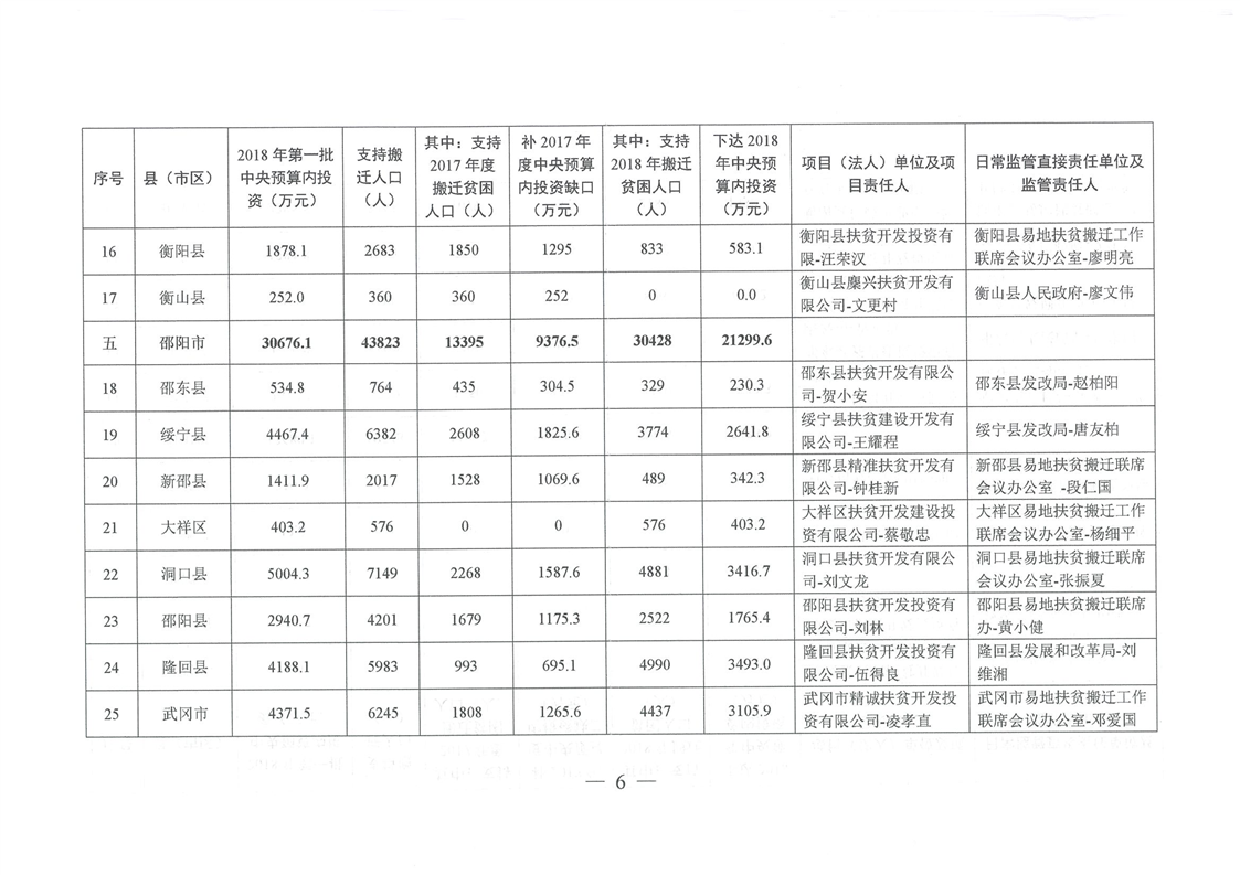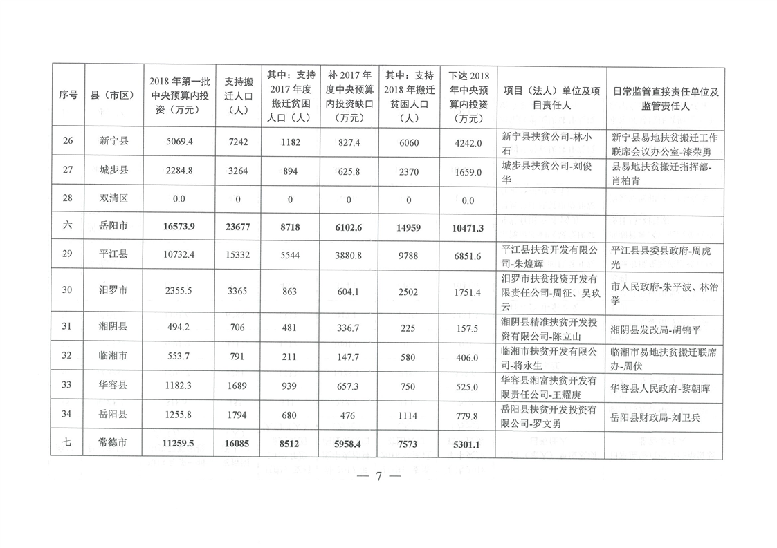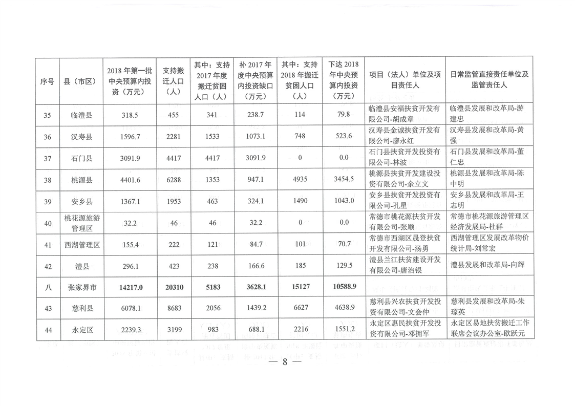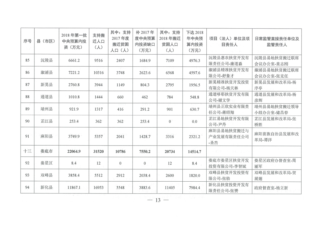 湖南省发展和改革委员会关于下达湖南省2018年易地扶贫搬迁工程第一批中央预算内投资计划的通知