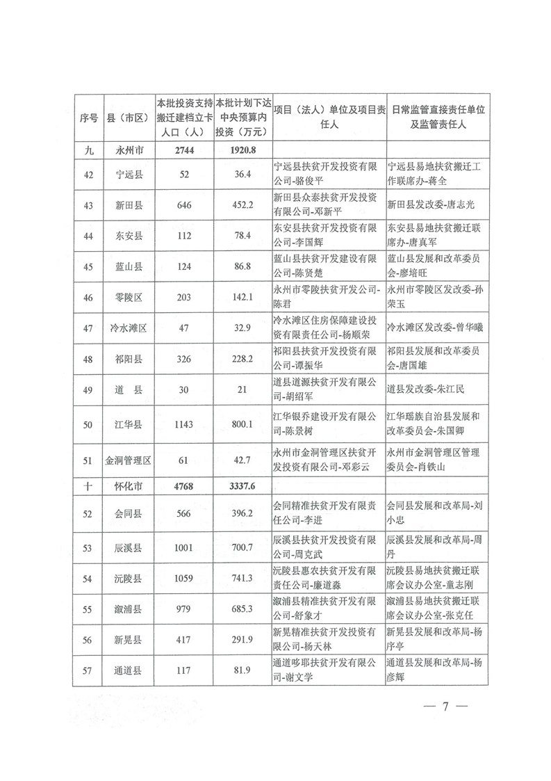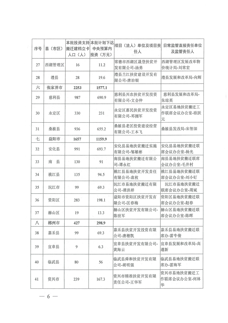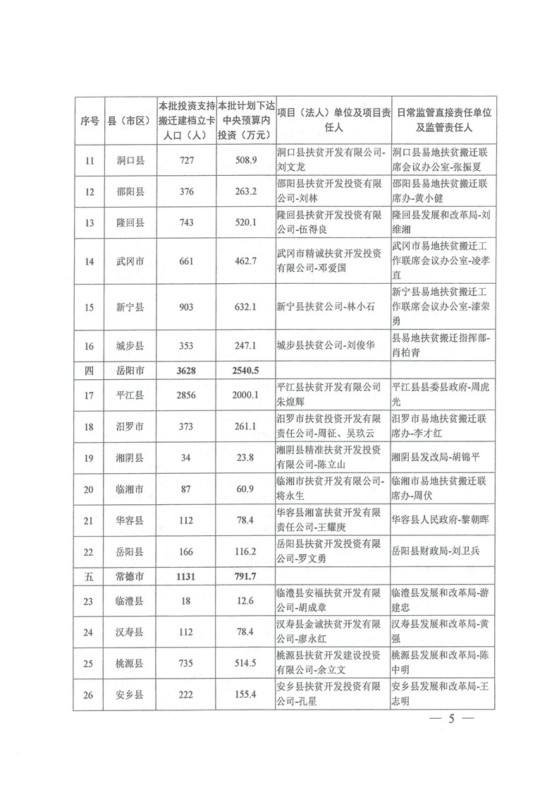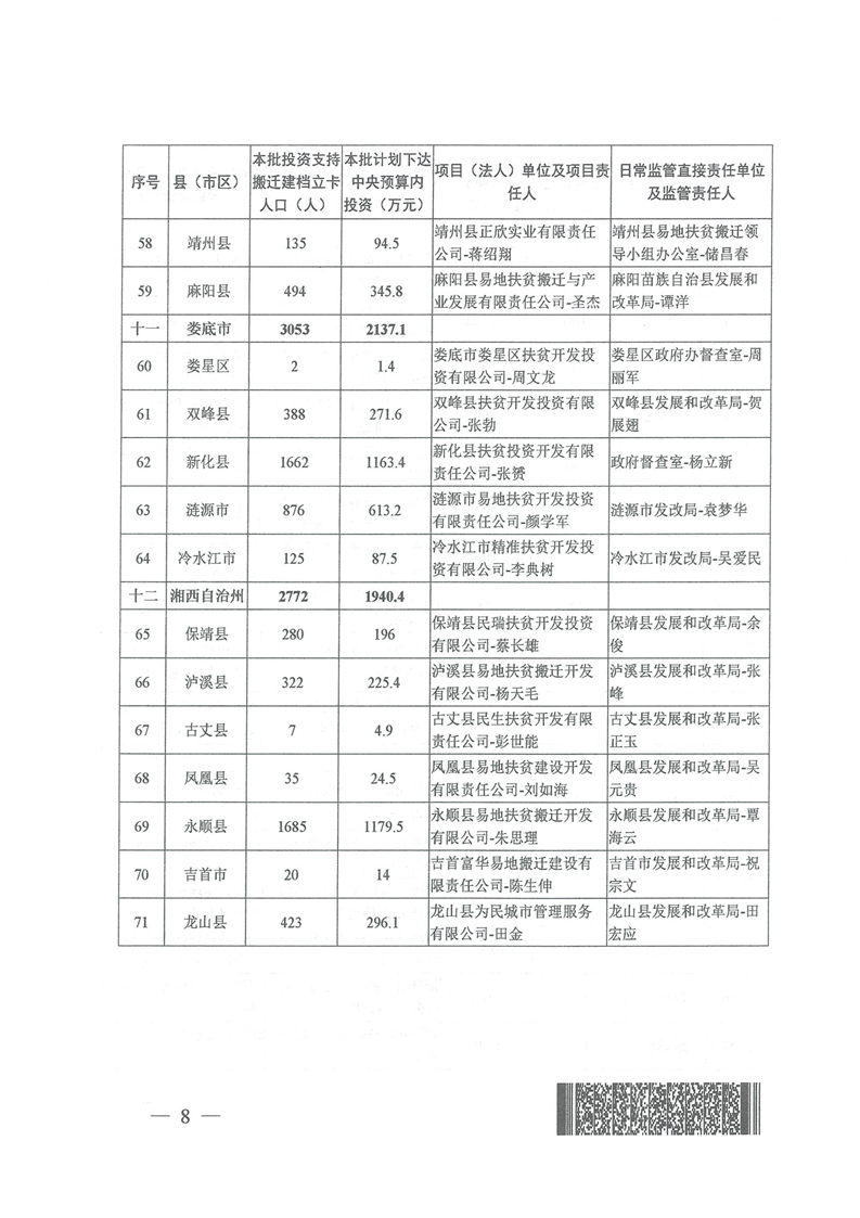 湖南省发展和改革委员会关于下达湖南省易地扶贫搬迁工程2018年第二批中央预算内投资计划的通知