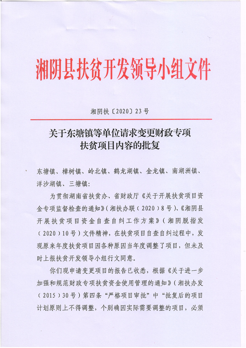 关于东塘镇等单位请求变更财政专项扶贫项目内容的批复