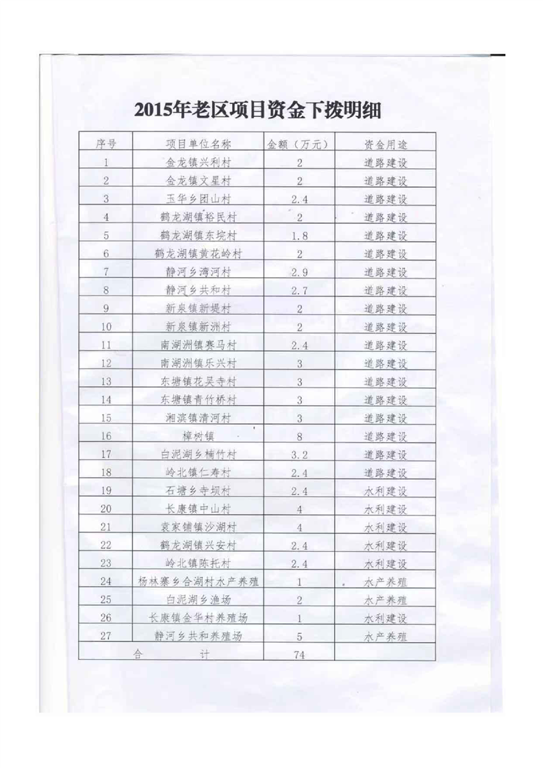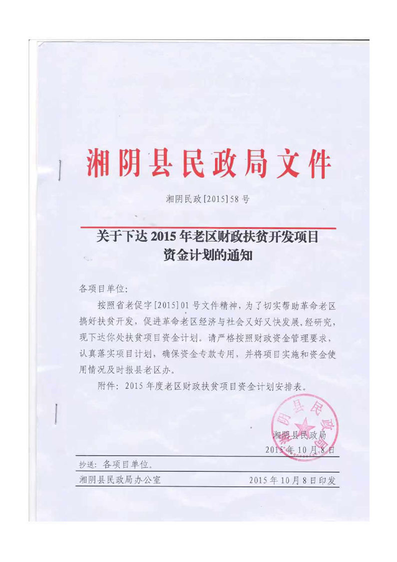 关于下达2015年老区财政扶贫开发项目资金计划的通知