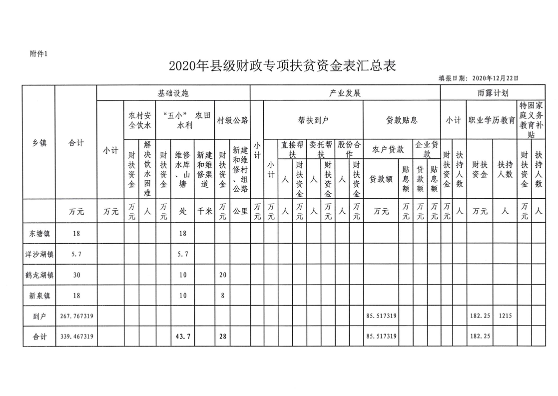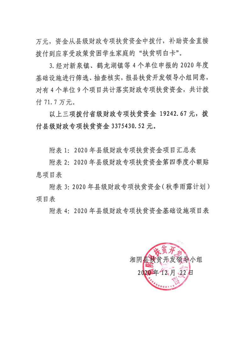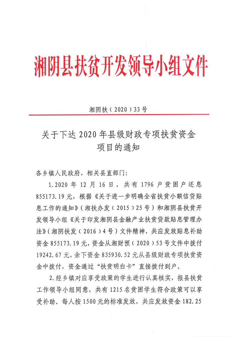 33号关于下达2020年县级财政专项扶贫资金项目的通知