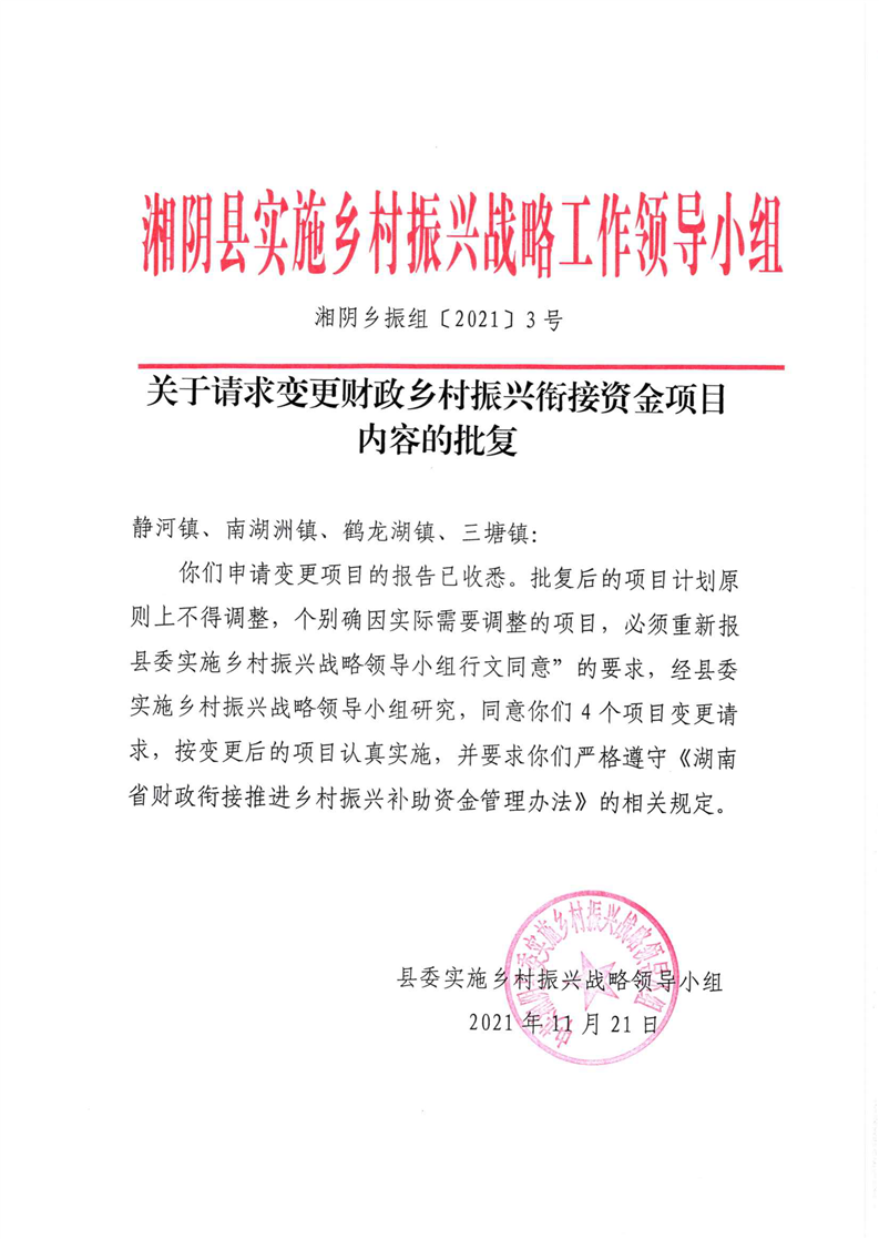 关于请求变更财政乡村振兴衔接资金项目内容的批复