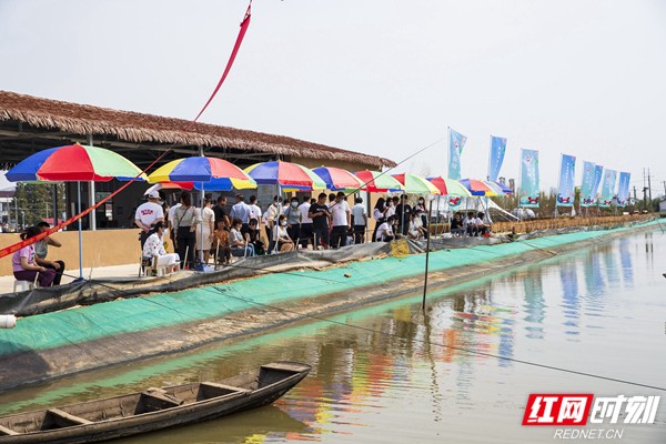 来到“湘水红”养殖基地,钓蟹活动也受到众多游客的青睐。一根钓杆,一张座椅,对于钓鱼人来说,便是充满愉悦的一整天。丰沃的池塘,也能让钓鱼人“永不空军”。活动现场,ID“刘志强钓鱼”和ID“徐亮钓鱼”两位抖音博主正在进行钓蟹battle。“钓螃蟹得需要更多的耐心。”两位大咖认真专注,螃蟹也陆续“上钩”。