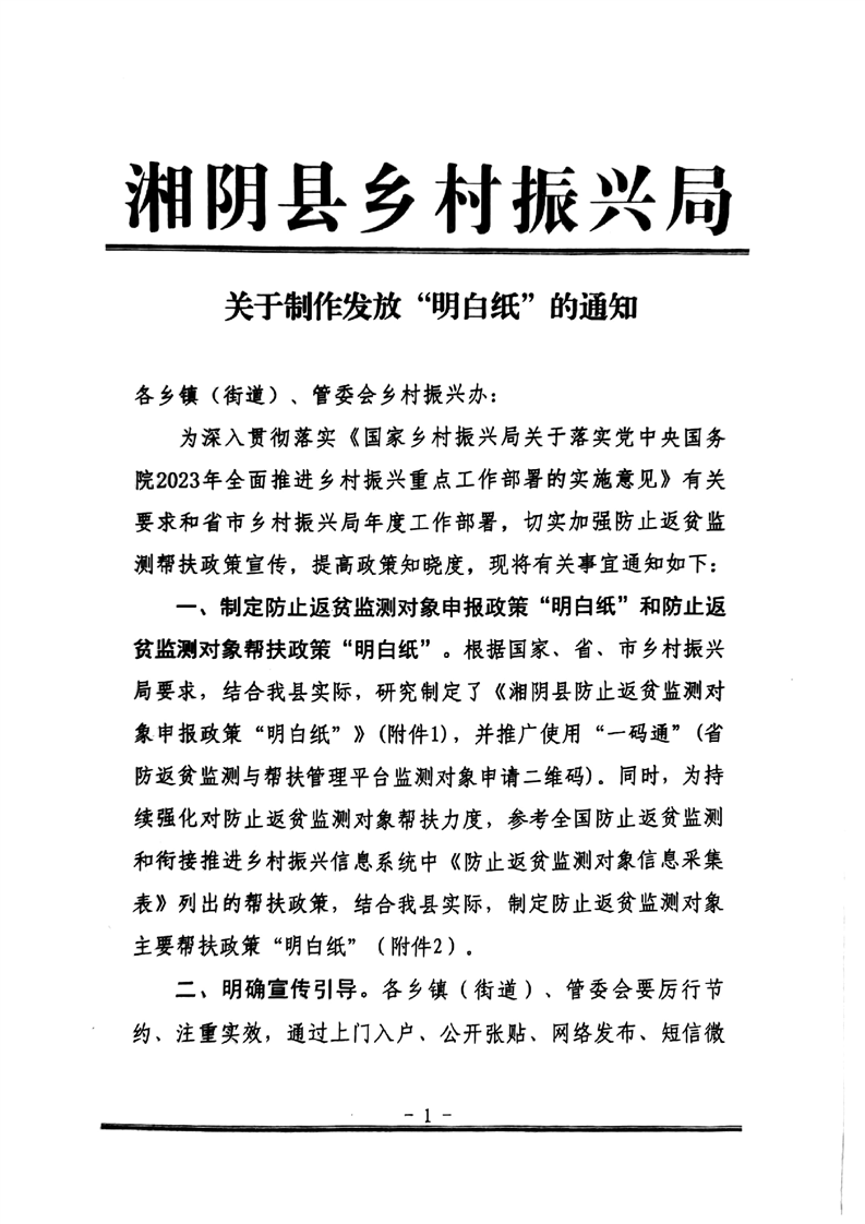 关于制作发放“明白”纸的通知