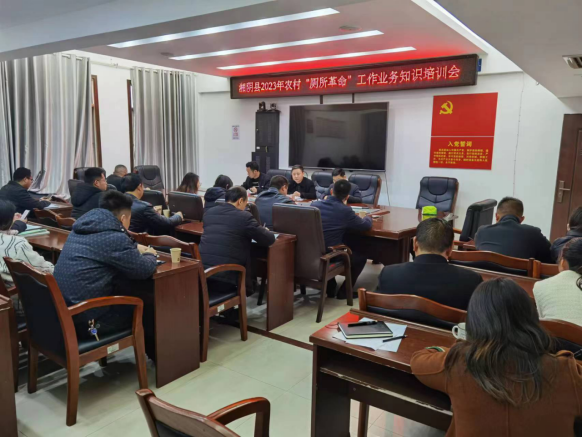 县乡村振兴局分管负责人陈资江解读了省局《关于做好2023年度农村改厕工作的通知》、部署湘阴县2023年农村厕改工作任务、对农村改厕工作相关知识进行业务培训。岳阳市生态环境局湘阴分局阳波对农村生活污水治理相关知识进行业务培训。县乡村振兴局乡村建设股股长谭卫波传达学习《湘阴县2023年“碧水攻坚战”行动方案》《中共岳阳市乡村振兴局党组落实省委巡视办“未巡先改”工作的整改方案》,此次会议坚决贯彻落实了习近平总书记“守护好一江碧水”殷殷嘱托,推动了2023年我县农村厕改工作有序开展。