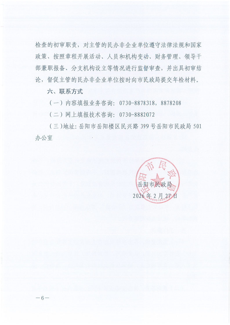 岳阳市民政局关于开展全市性民办非企业单位2025年度检查工作的通知