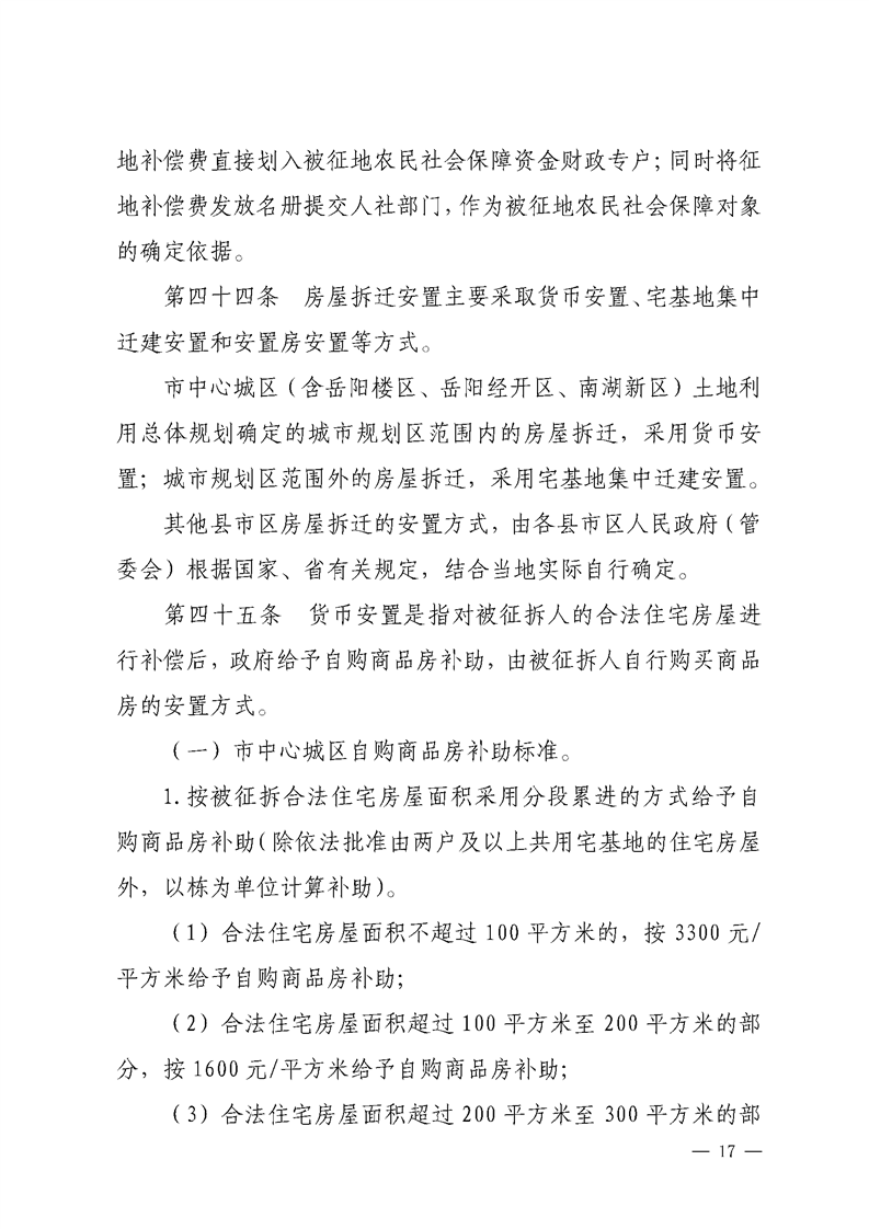 关于印发《湘阴县集体土地征收与房屋拆迁补偿安置办法》的通知