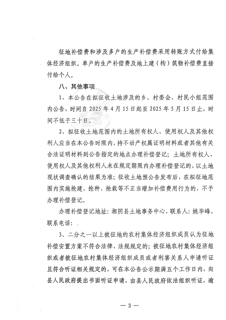 湘阴县人民政府关于湘阴县2025年第一批次建设项目拟征收土地补偿安置方案公告
