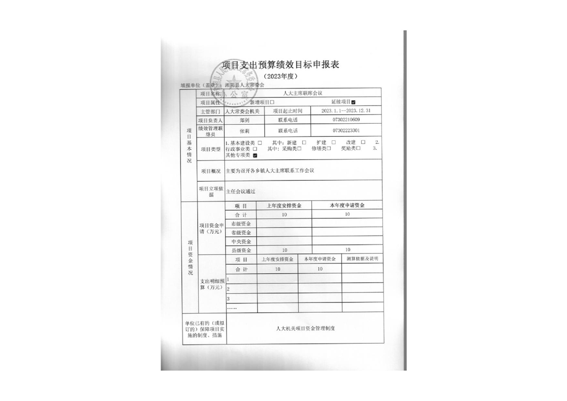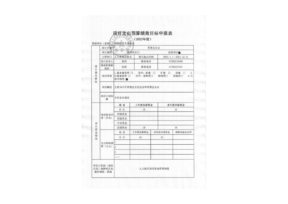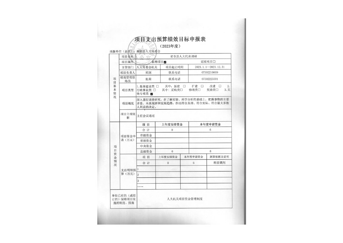 2023年度-湘阴县人民代表大会常务委员会-整体与项目支出预算绩效目标申报表