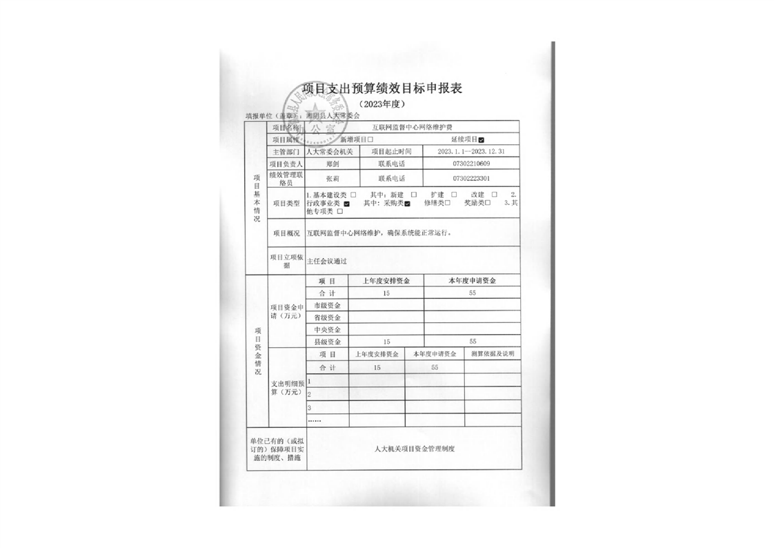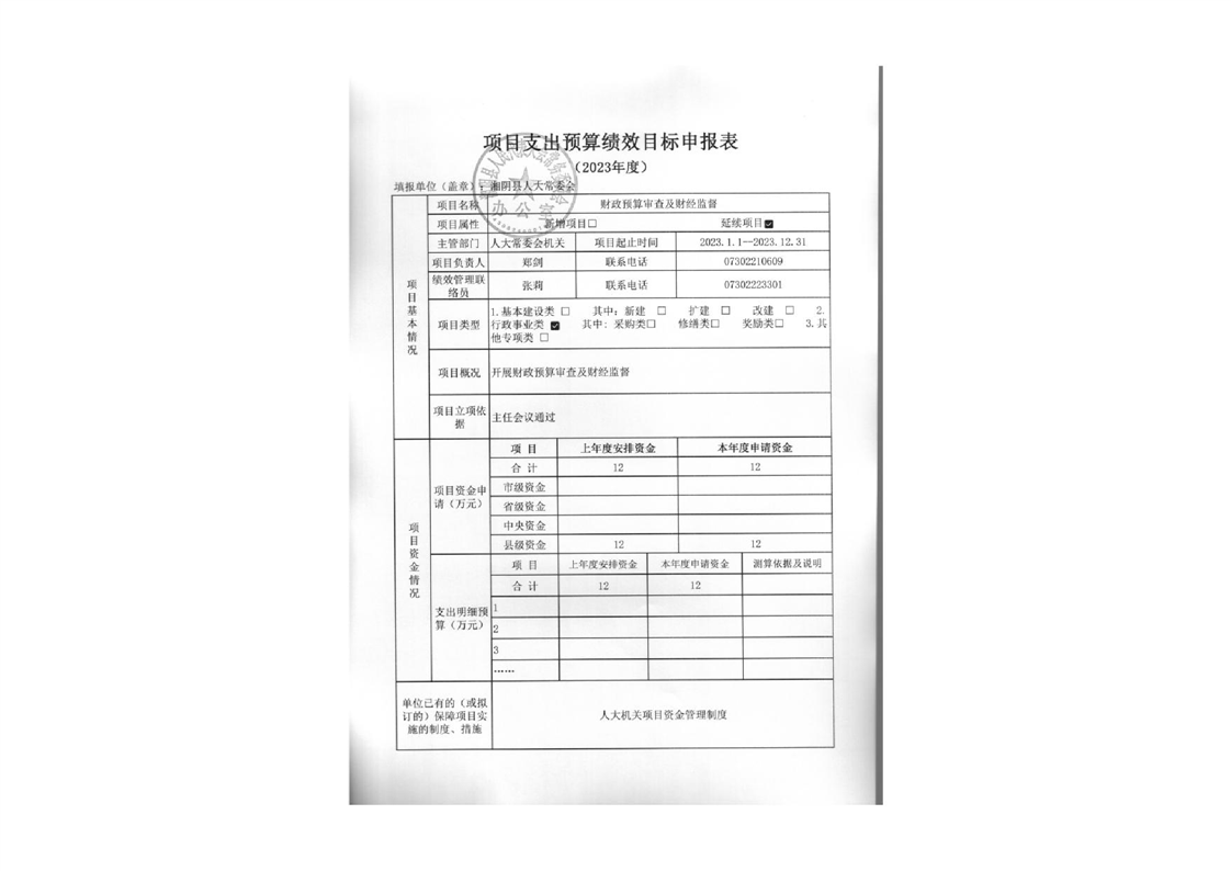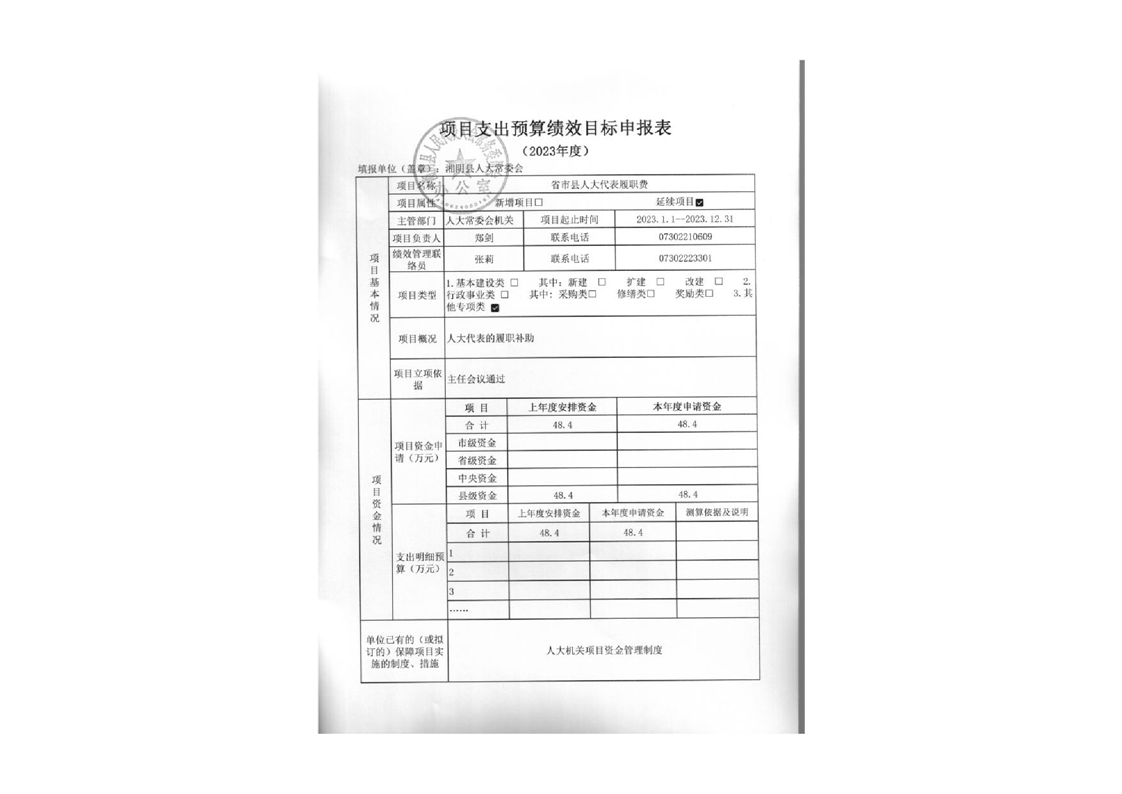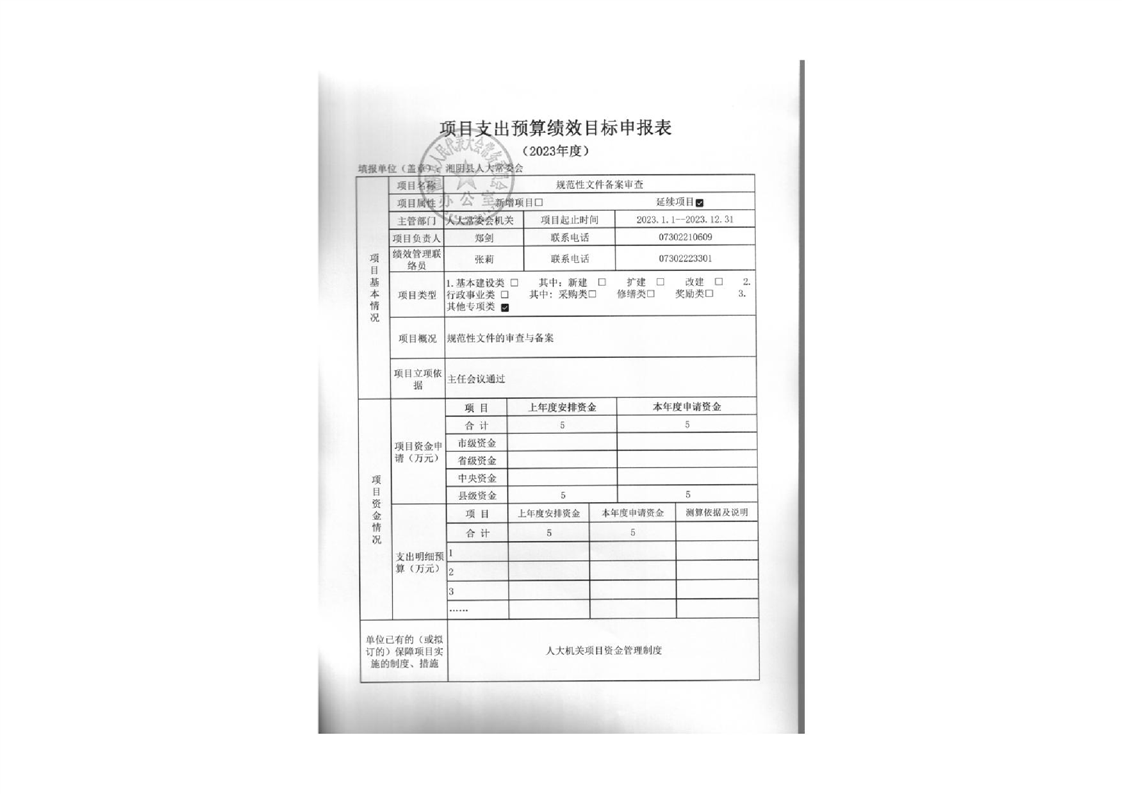 2023年度-湘阴县人民代表大会常务委员会-整体与项目支出预算绩效目标申报表