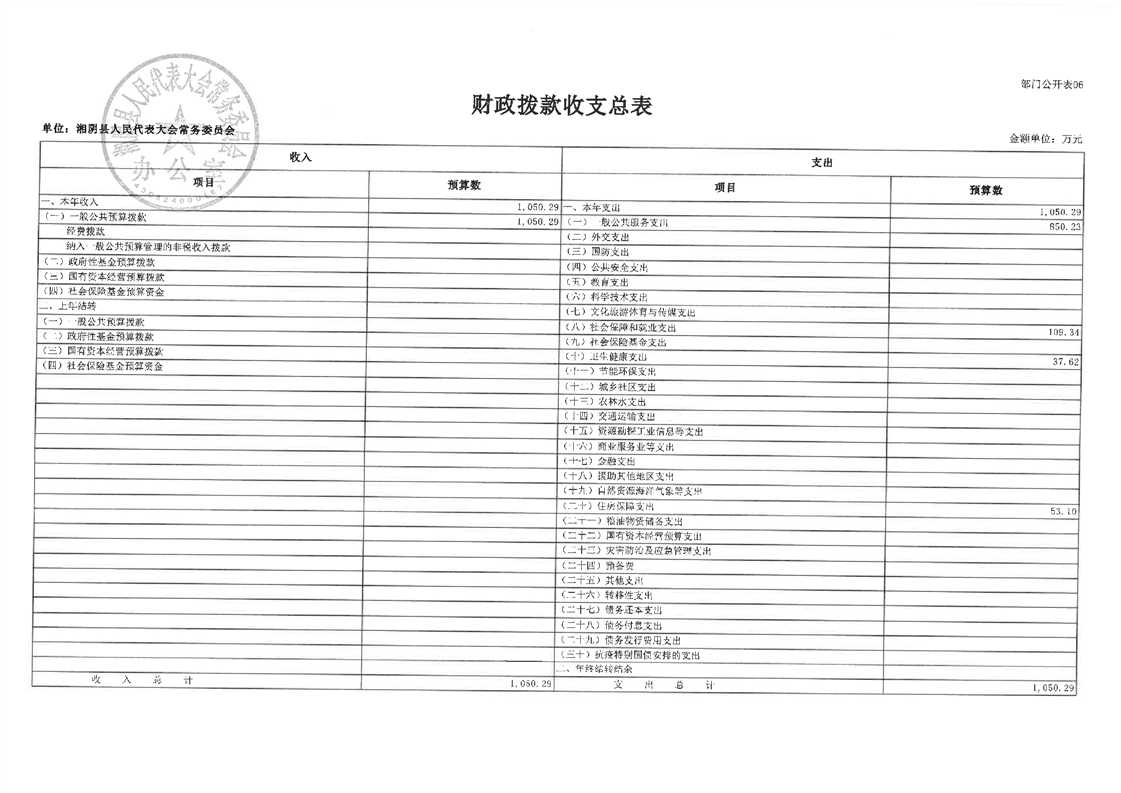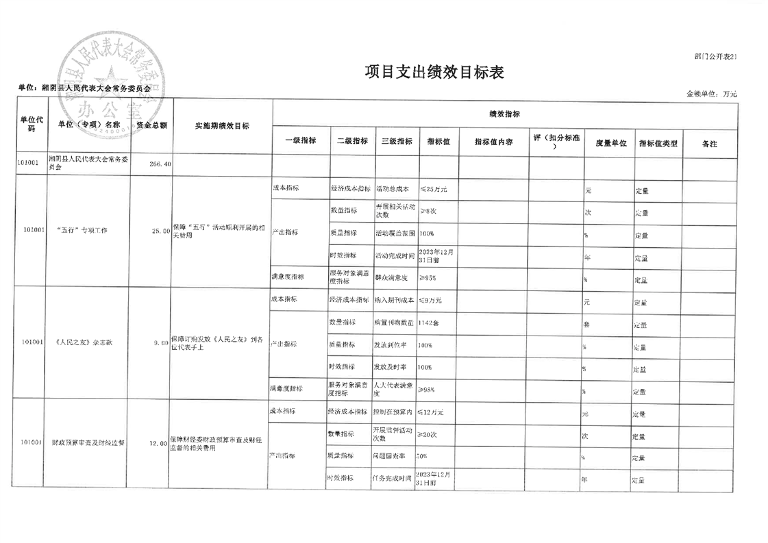 湘阴县人民代表大会常务委员会-2023年度-部门预算公开