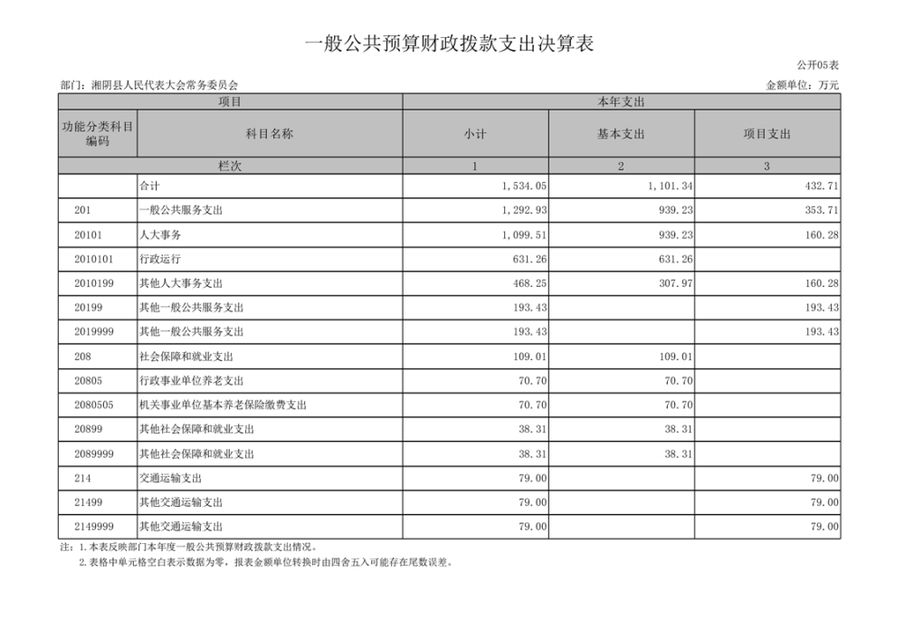 2023年-湘阴县人民代表大会常务委员会-部门决算