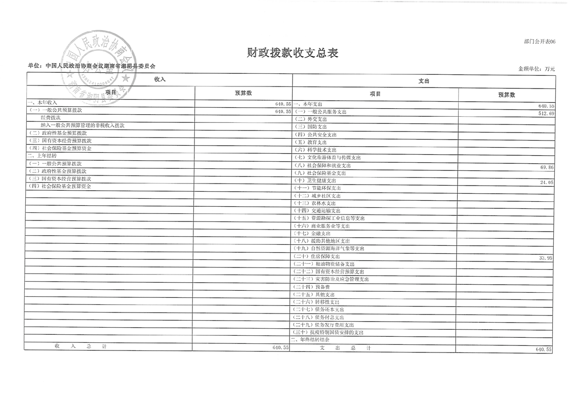 中国人民政治协商会议湖南省湘阴县委员会—2023年度—部门预算公开