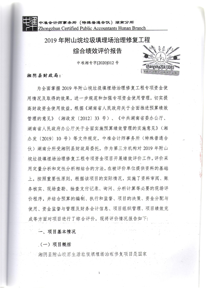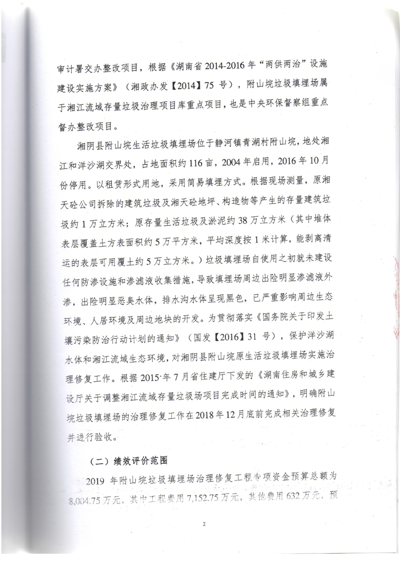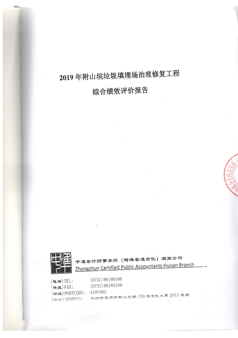 2019年附山垸垃圾填埋场治理修复工程综合绩效评价报告