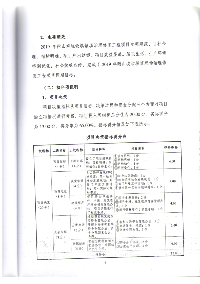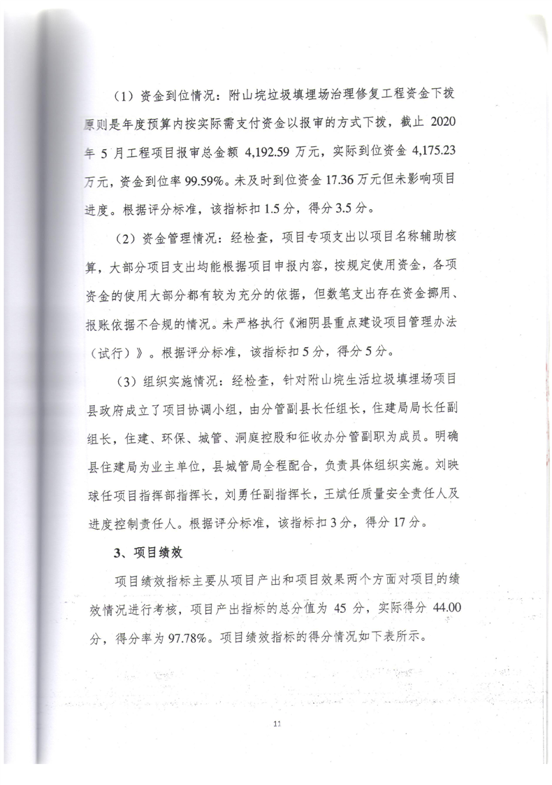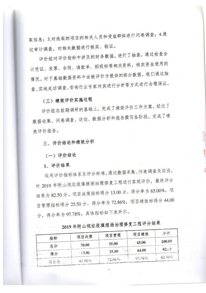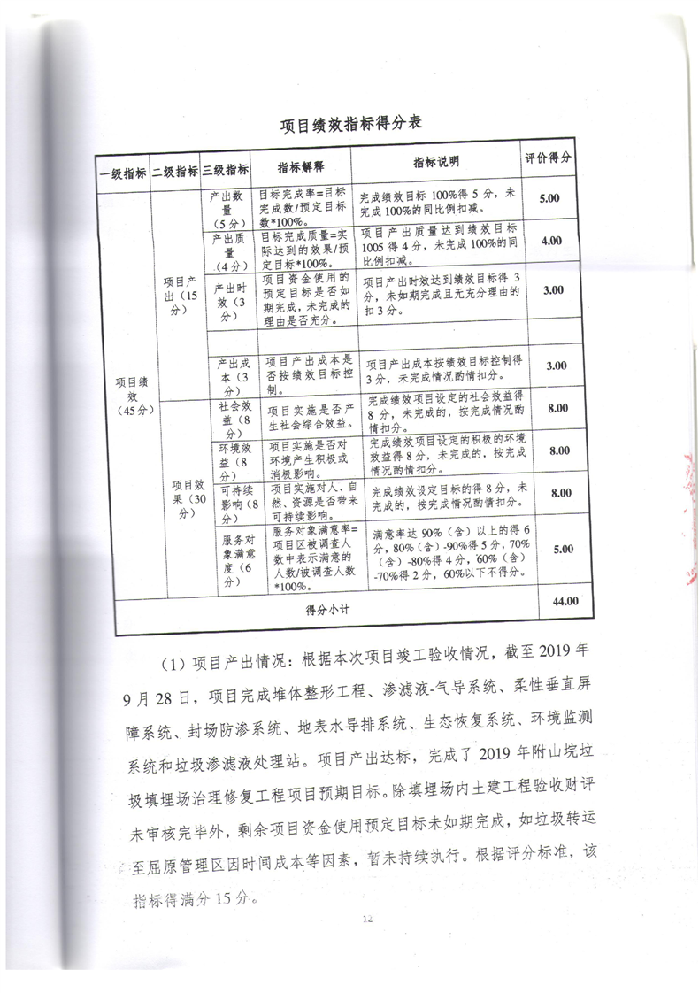 2019年附山垸垃圾填埋场治理修复工程综合绩效评价报告