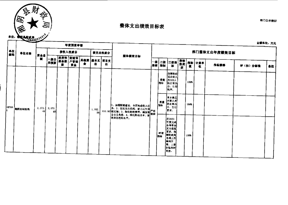 湘阴县财政局-2023年度部门预算公开
