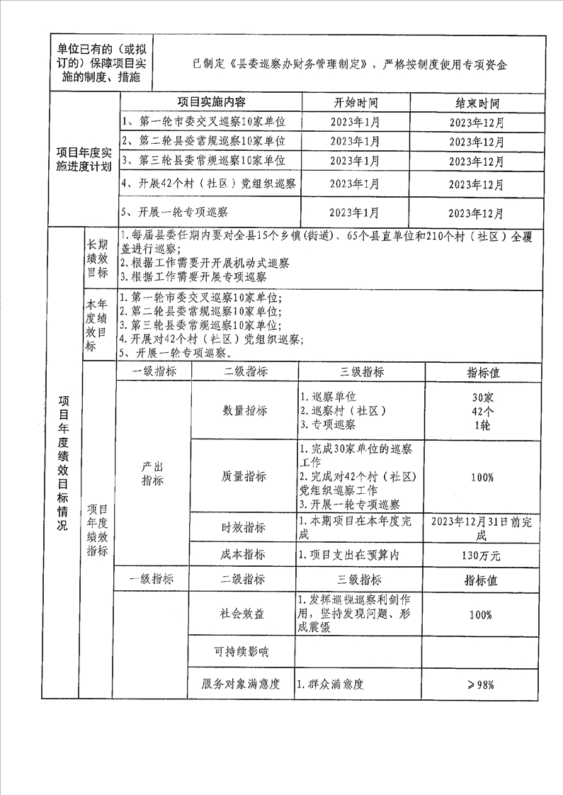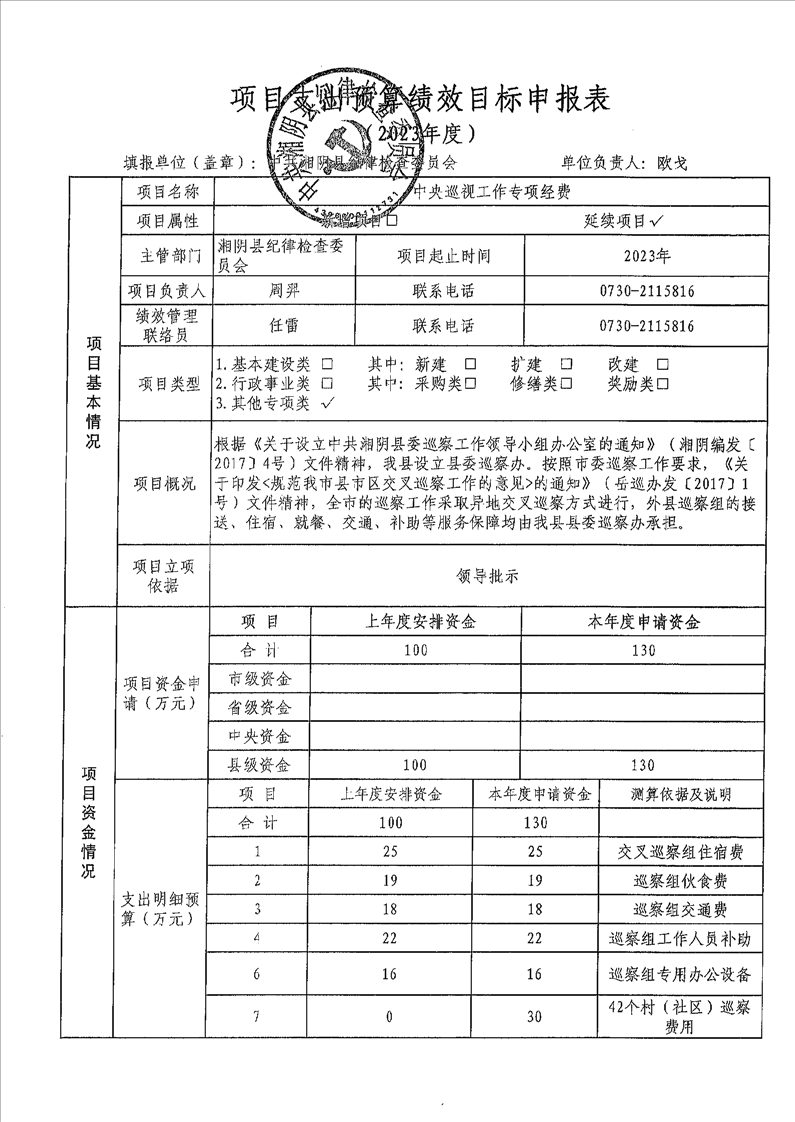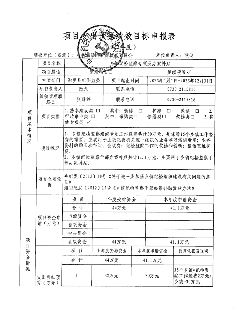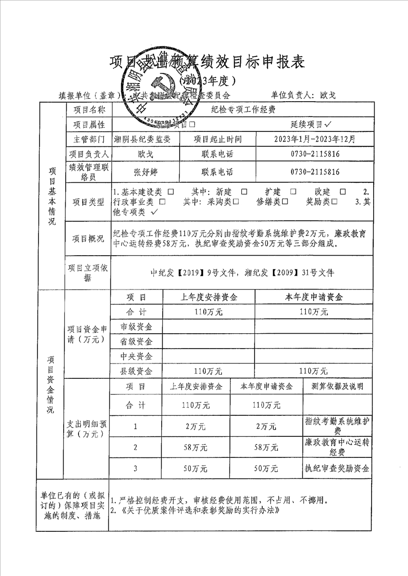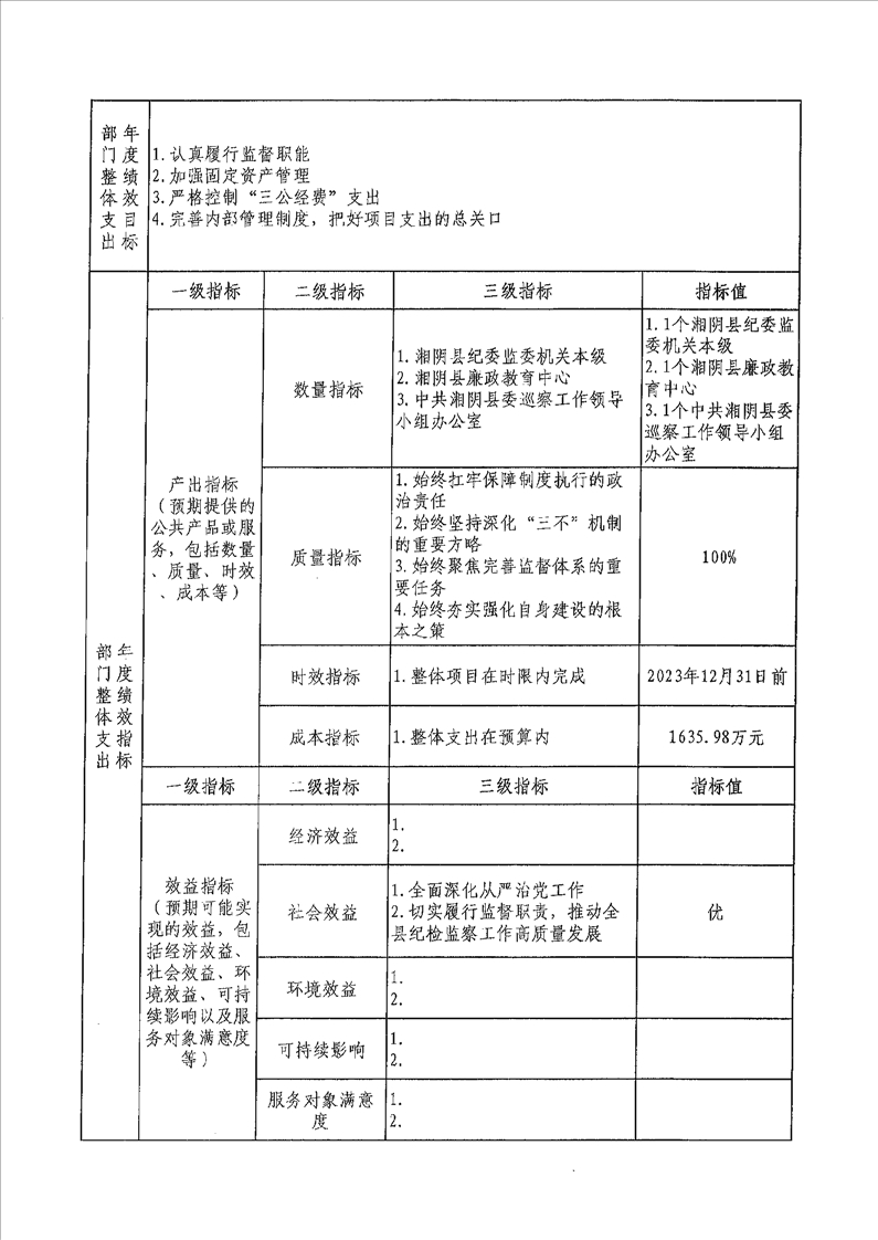 2023年度湘阴县纪委监委预算绩效目标公开