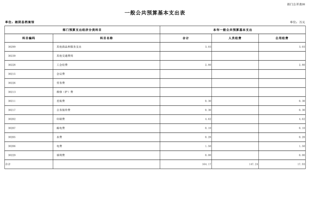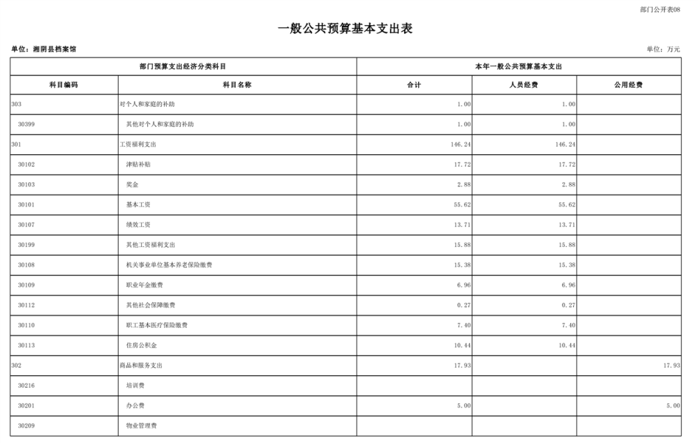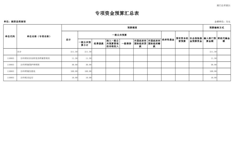 湘阴县档案馆-2025年-预算公开