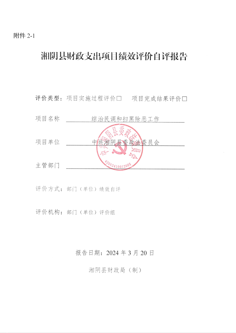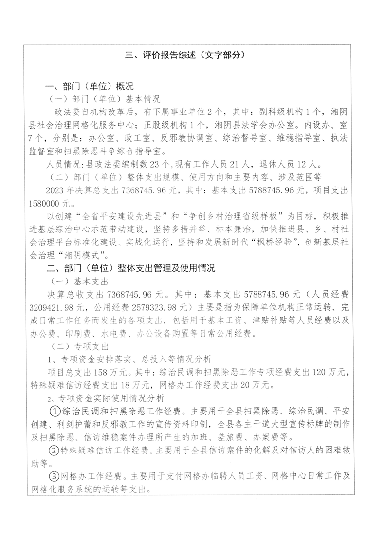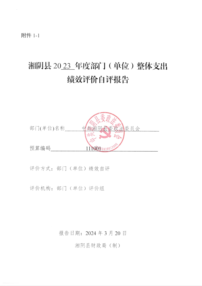 2023年-中共湘阴县委政法委员会-财政预算资金绩效自评公开