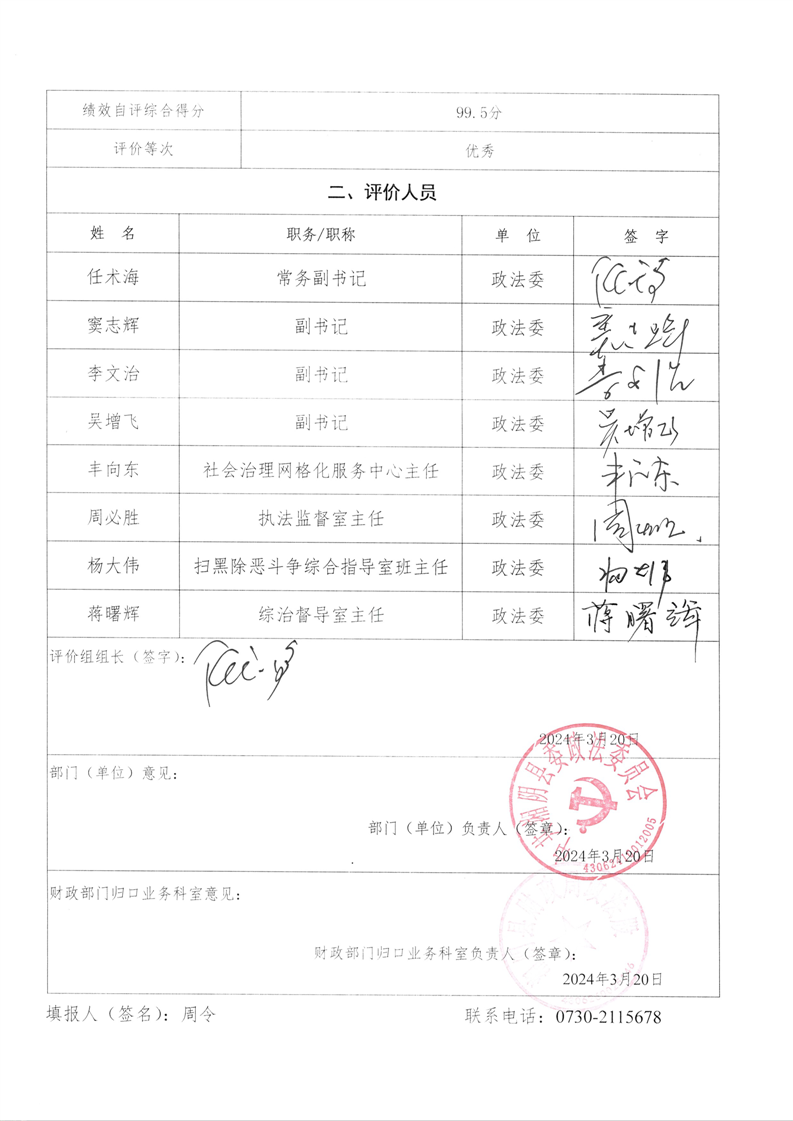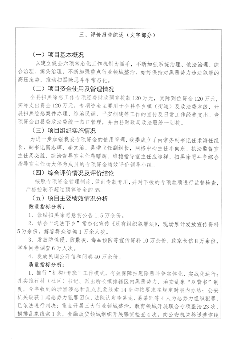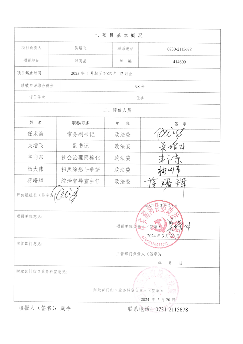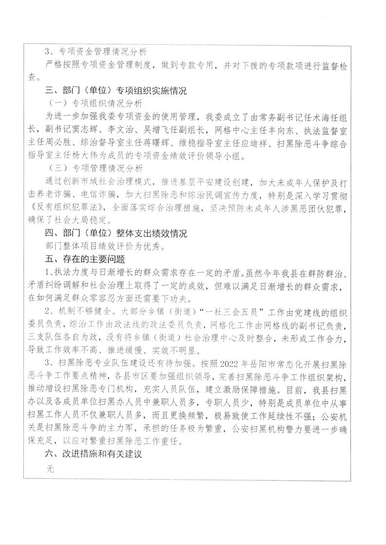 2023年-中共湘阴县委政法委员会-财政预算资金绩效自评公开