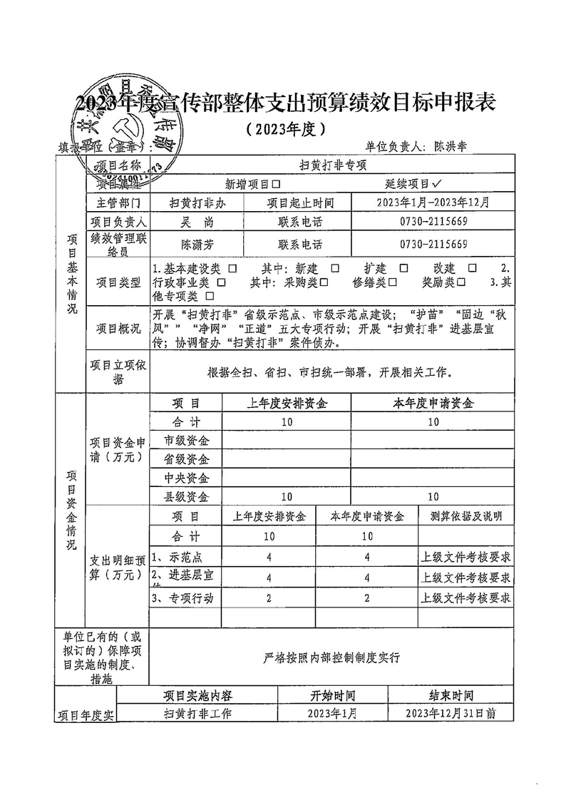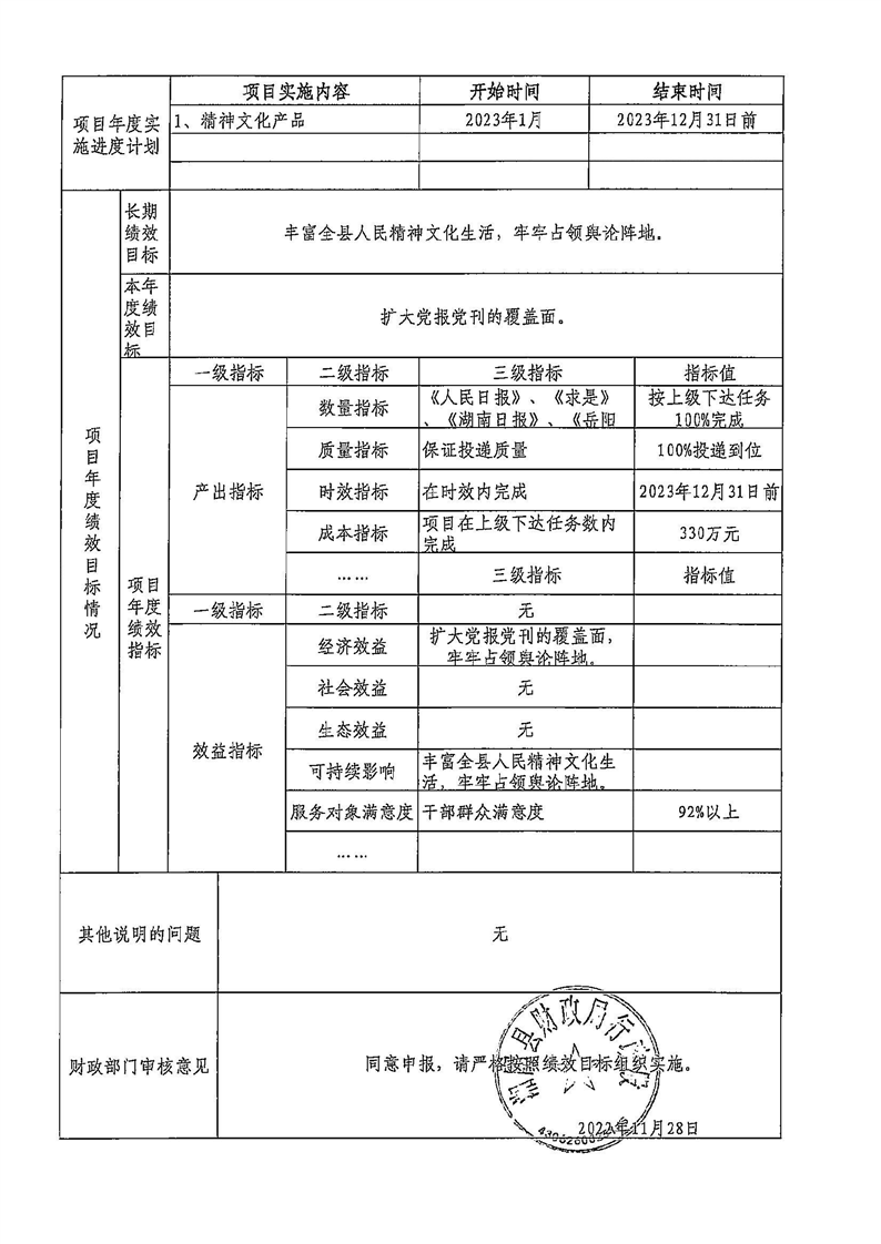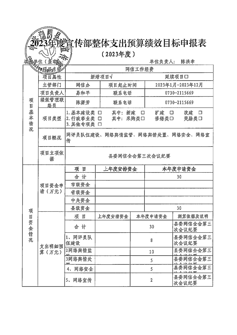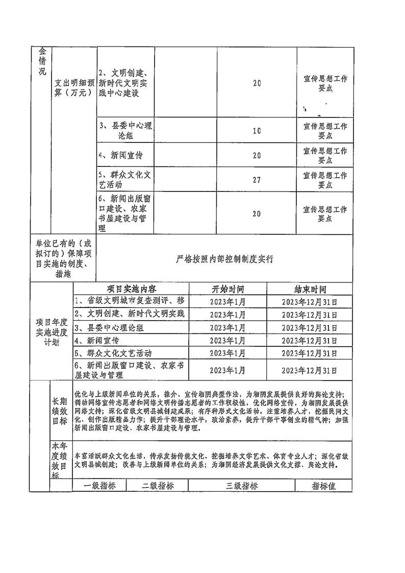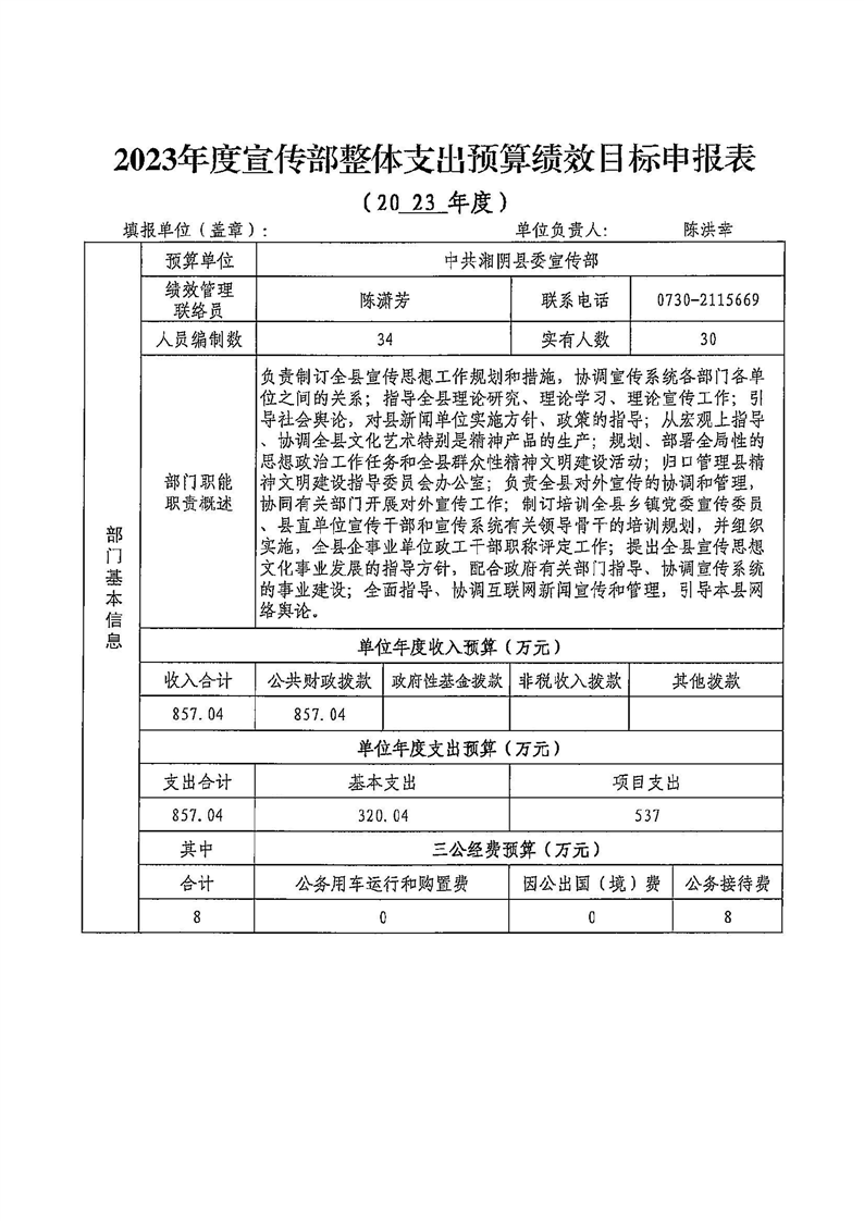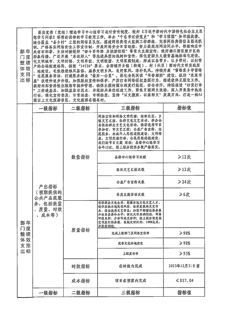 2023年宣传部整体支出预算绩效目标预算申报表