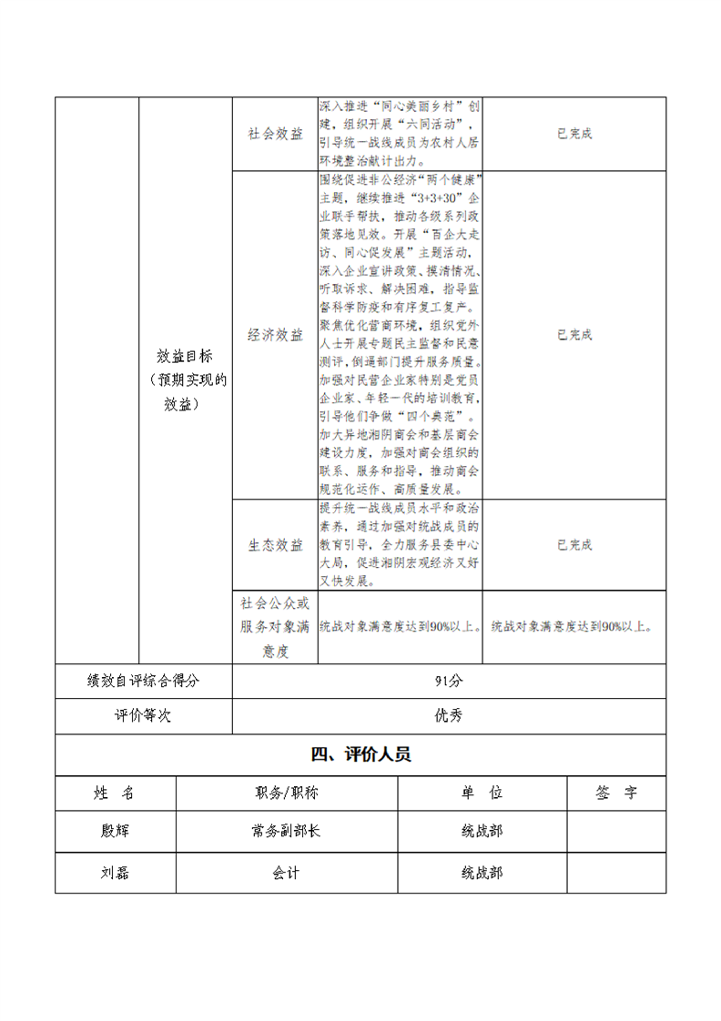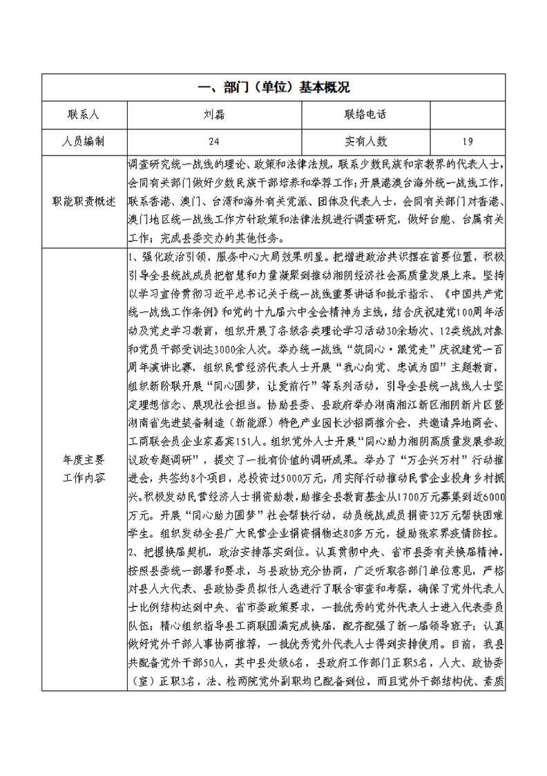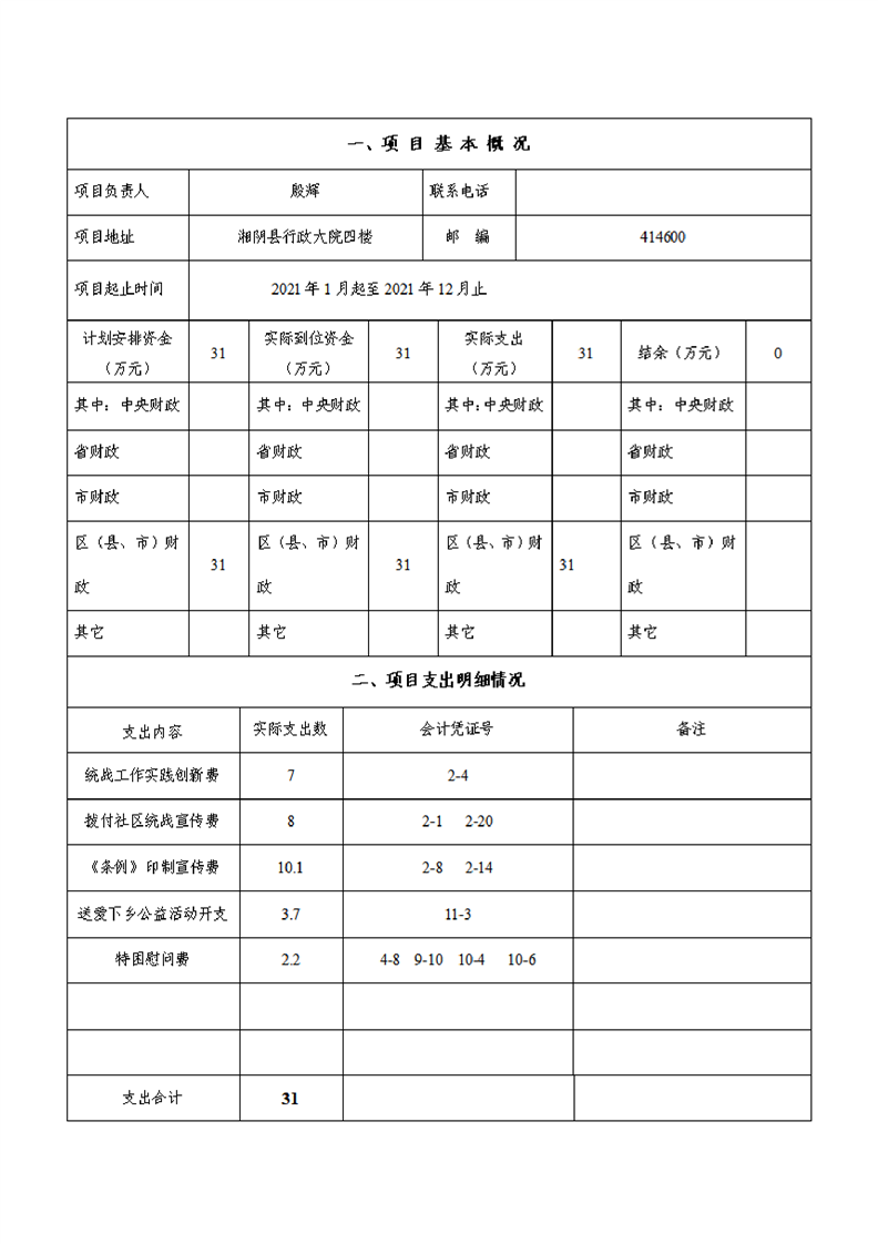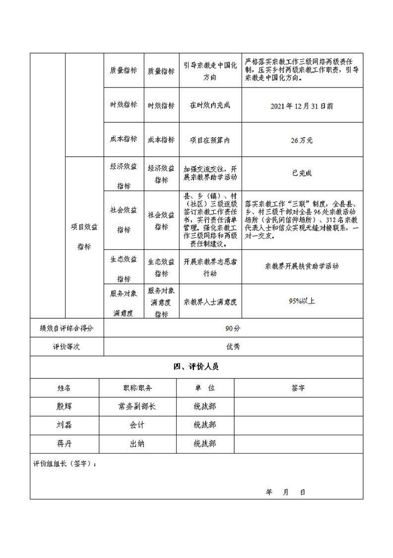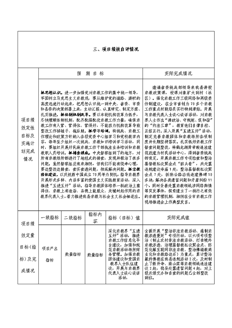 湘阴县统战部2021年度财政支出绩效评价自评 报告