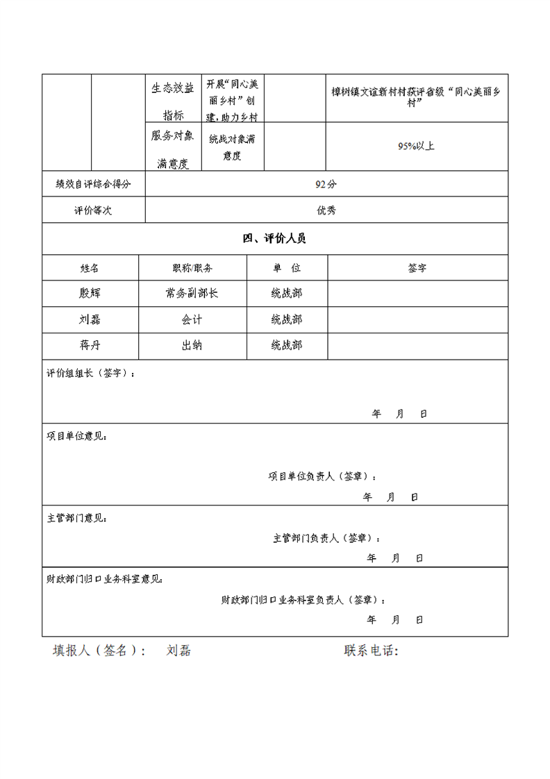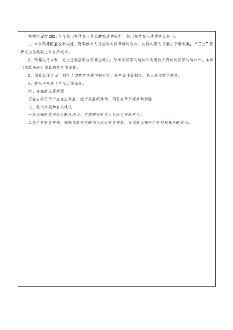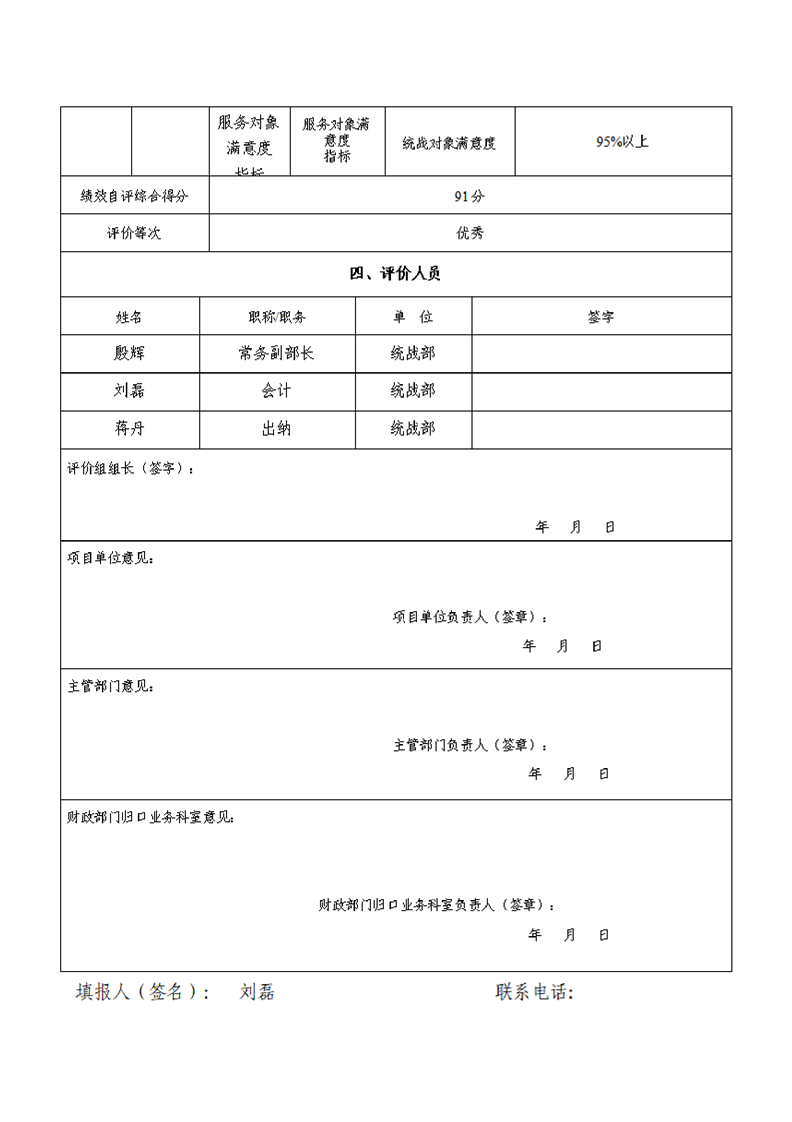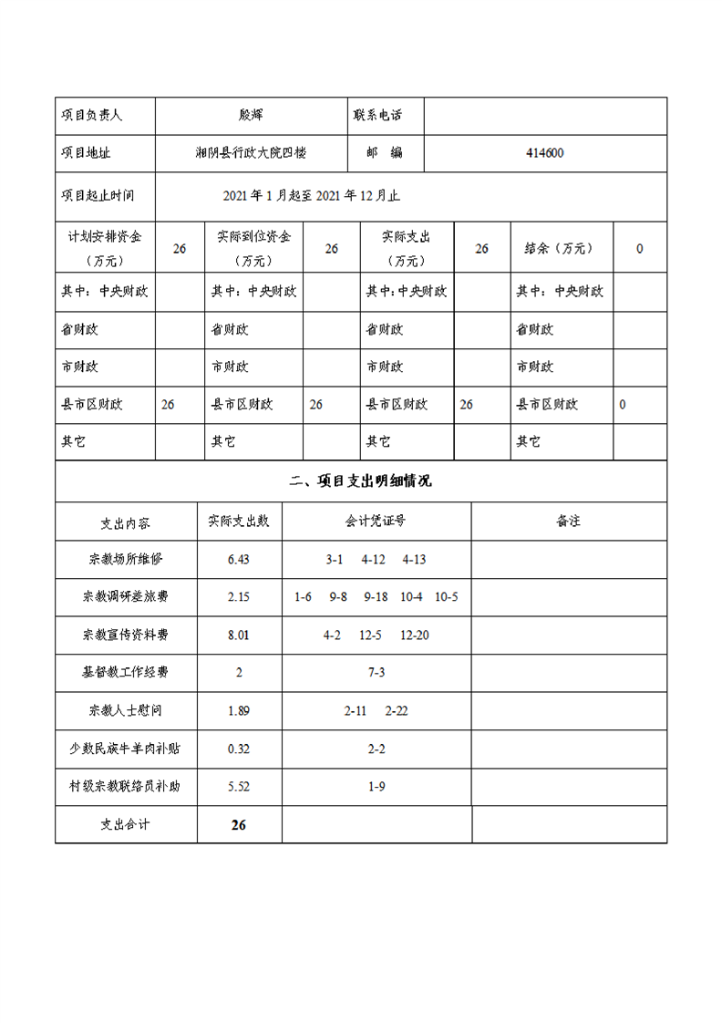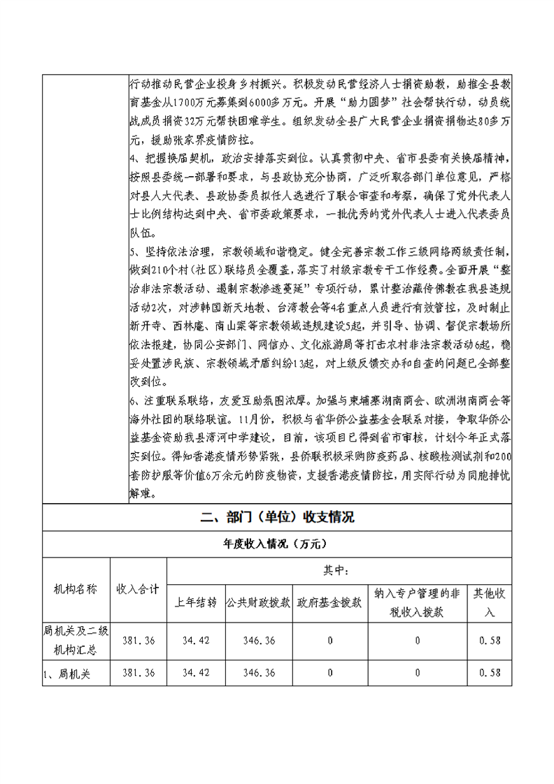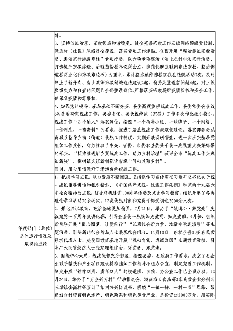 湘阴县统战部2021年度财政支出绩效评价自评 报告
