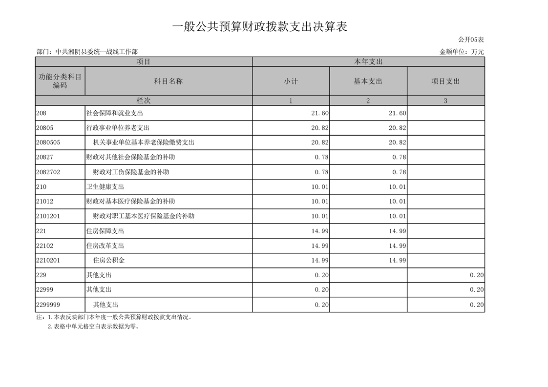 2021年度-中共湘阴县委统一战线工作部-决算公开