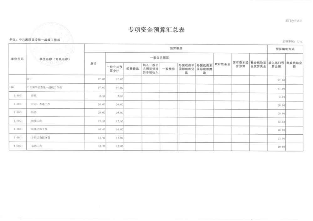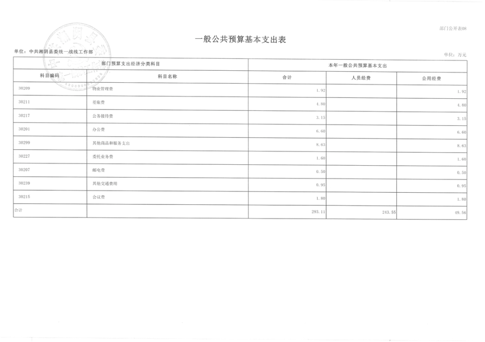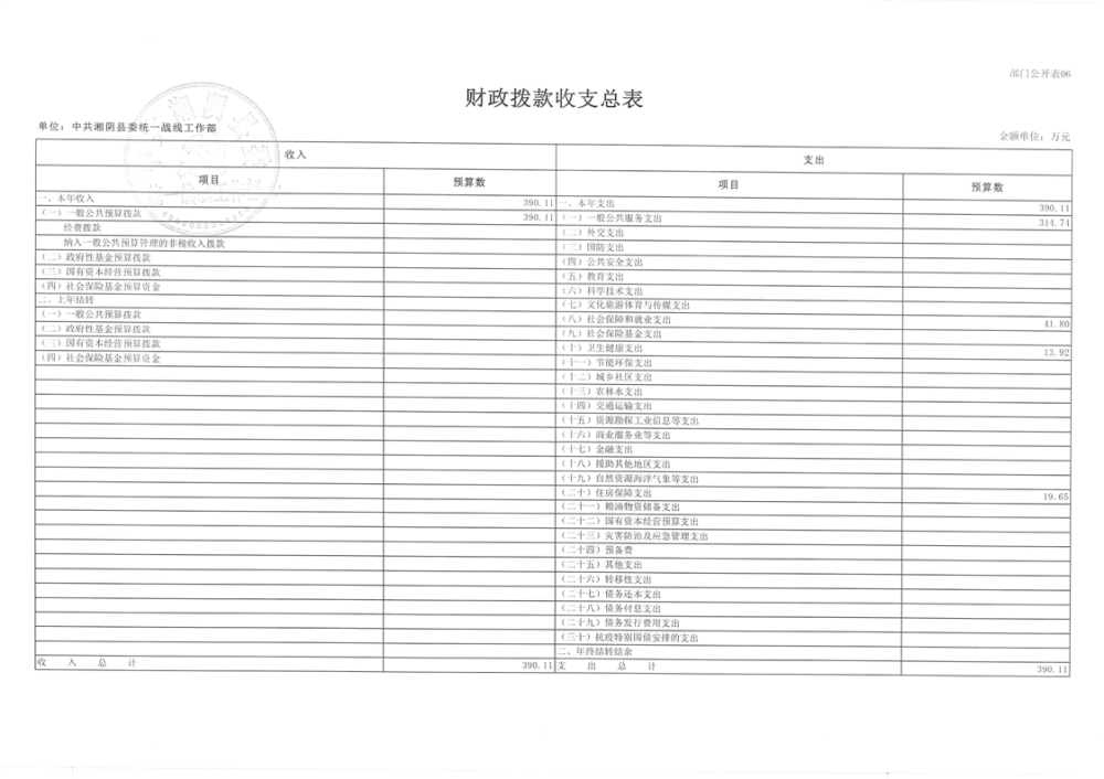 2024年度-中共湘阴县委统一战线工作部-预算公开
