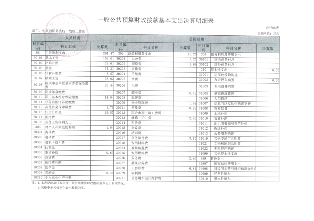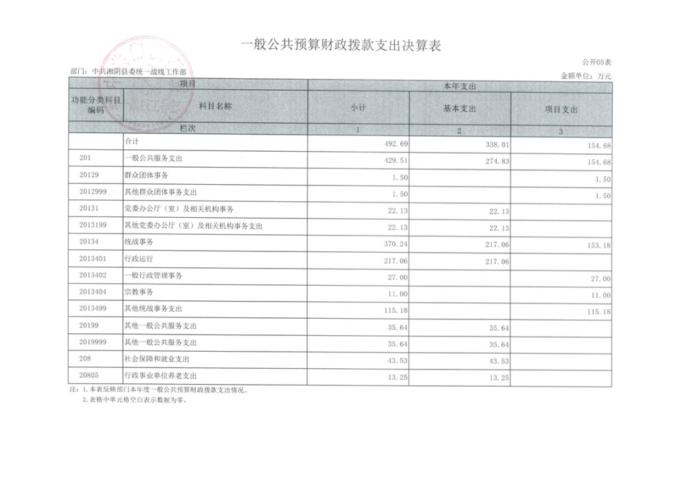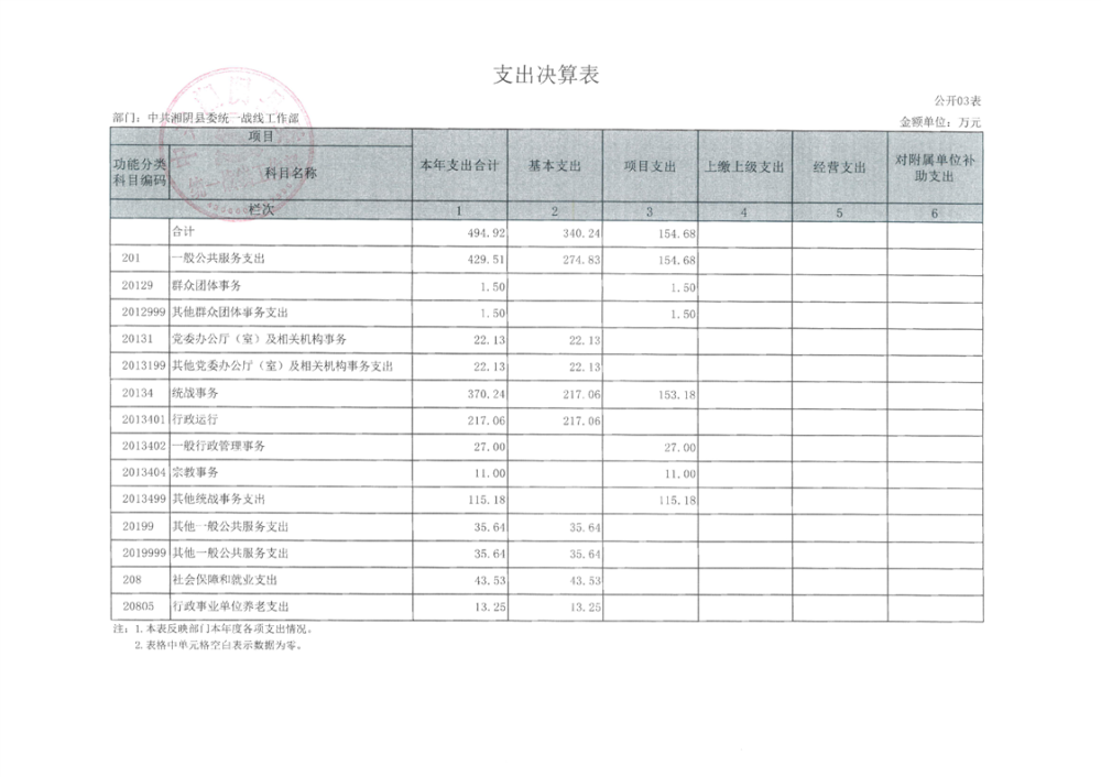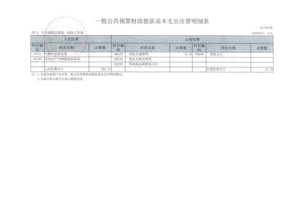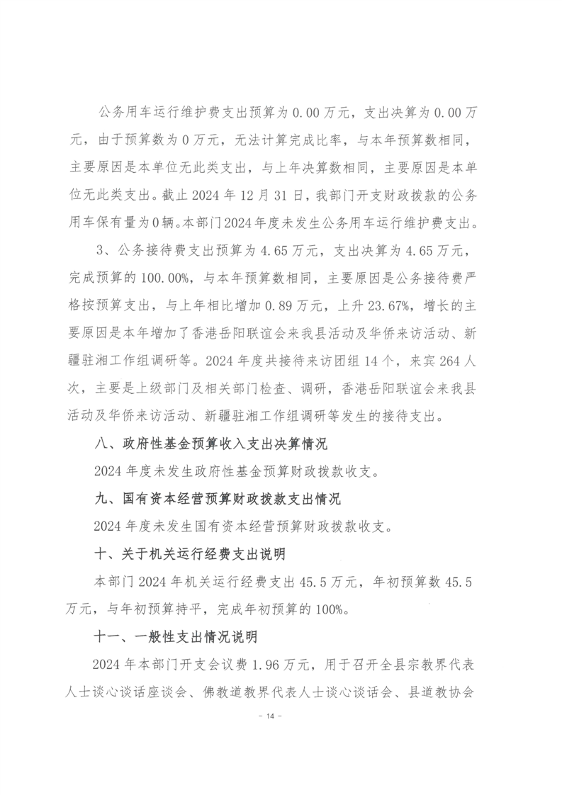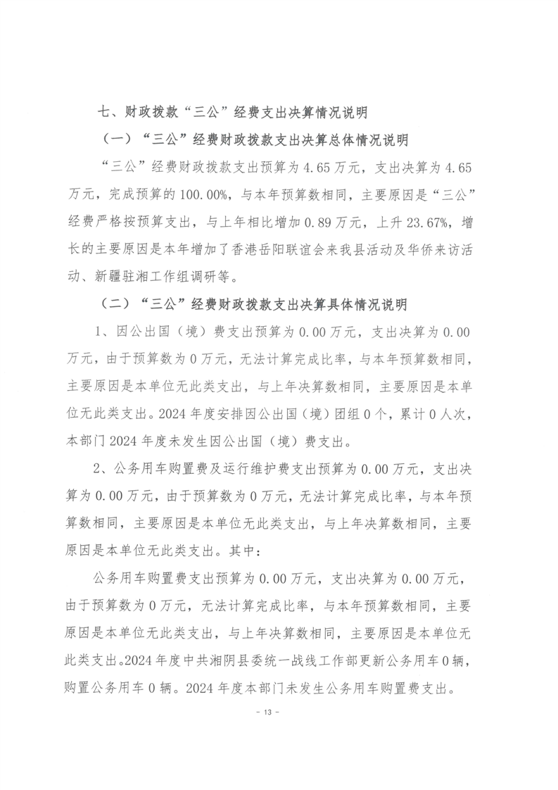 2024年度--湘阴县委统一战线工作部--决算公开
