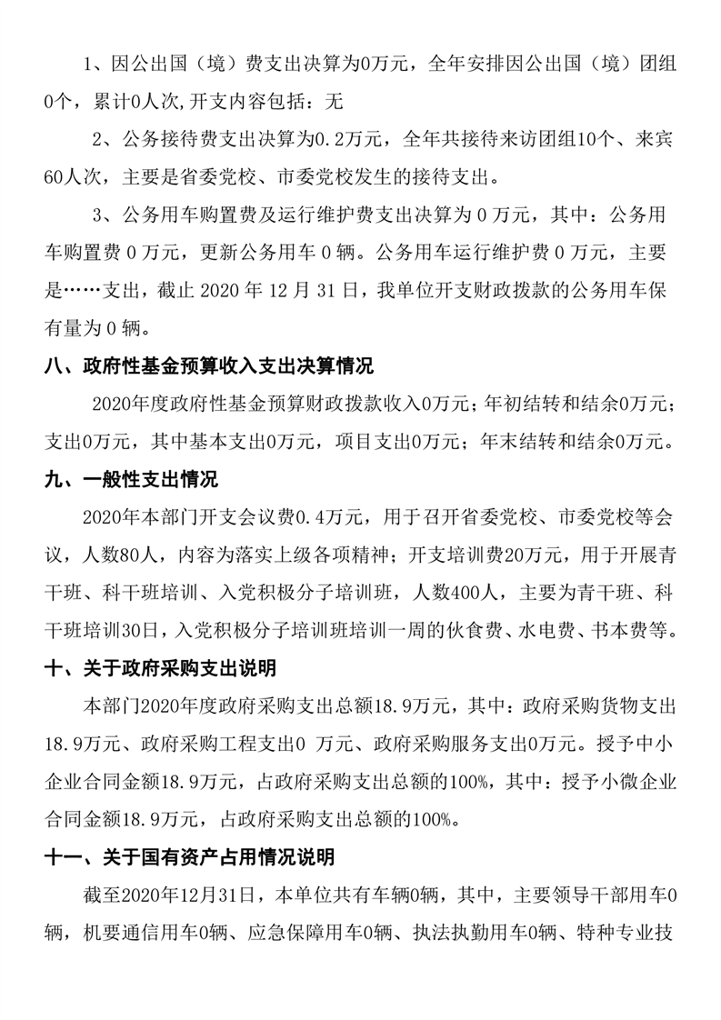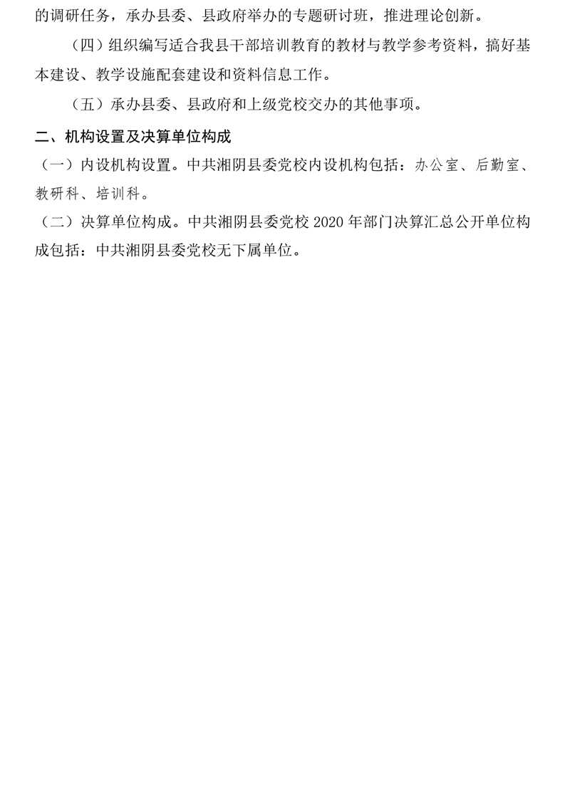 2020年度中共湘阴县委党校决算公开