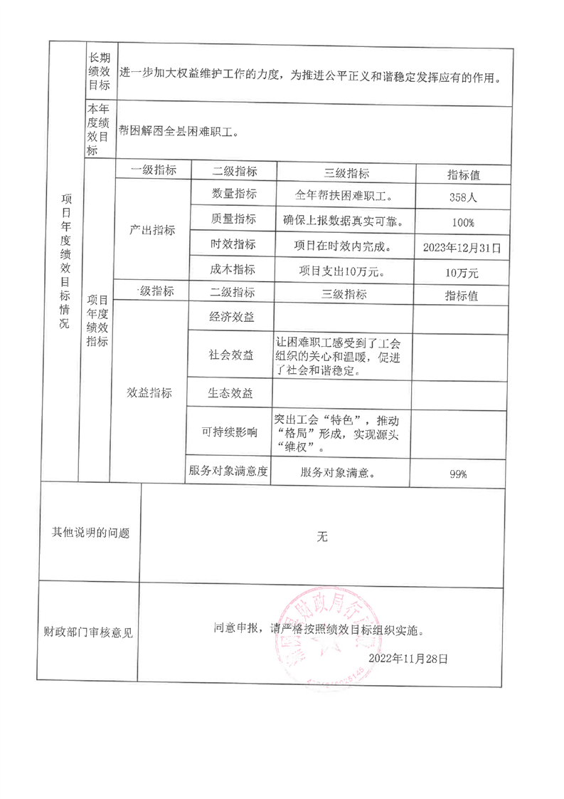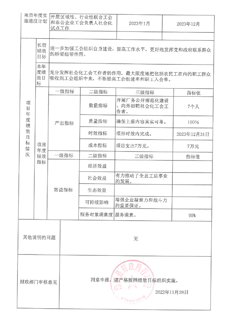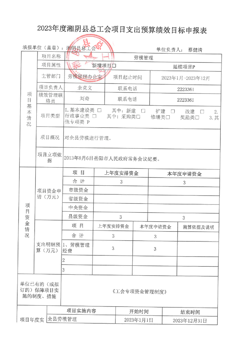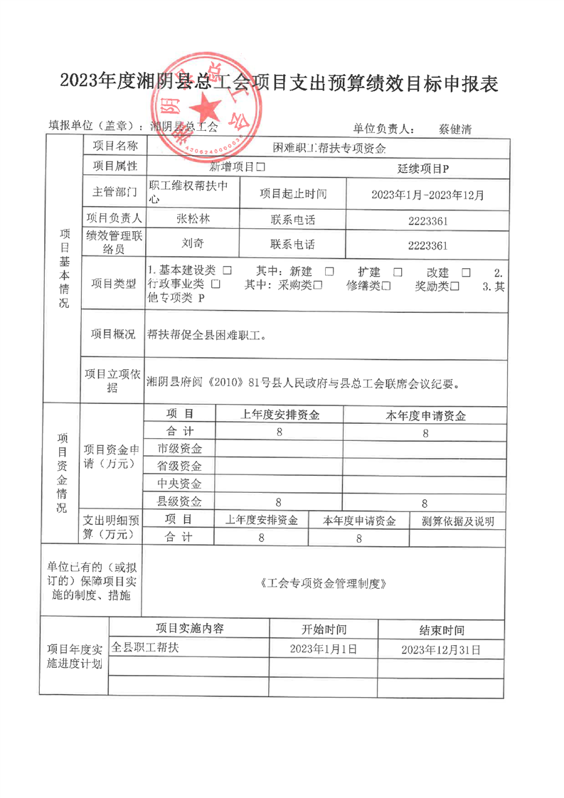 2023年度湘阴县总工会项目支出预算绩效目标申报表