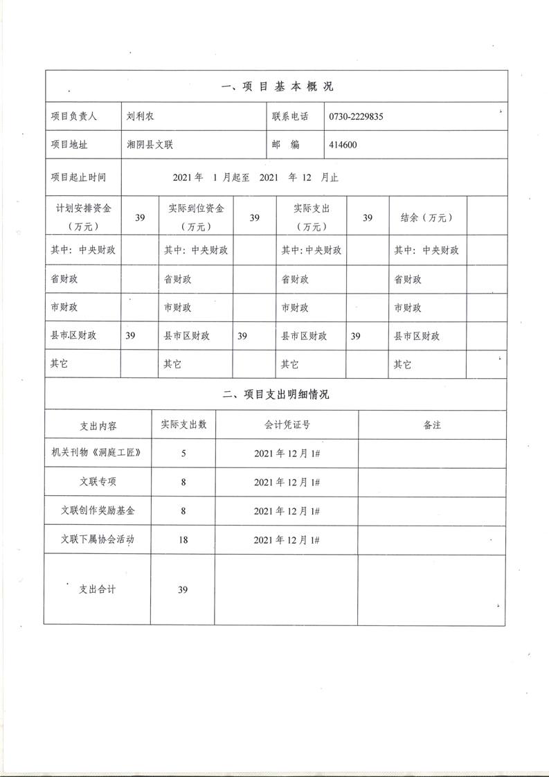 2021年度—湘阴县文学艺术界联合会部门-决算公开