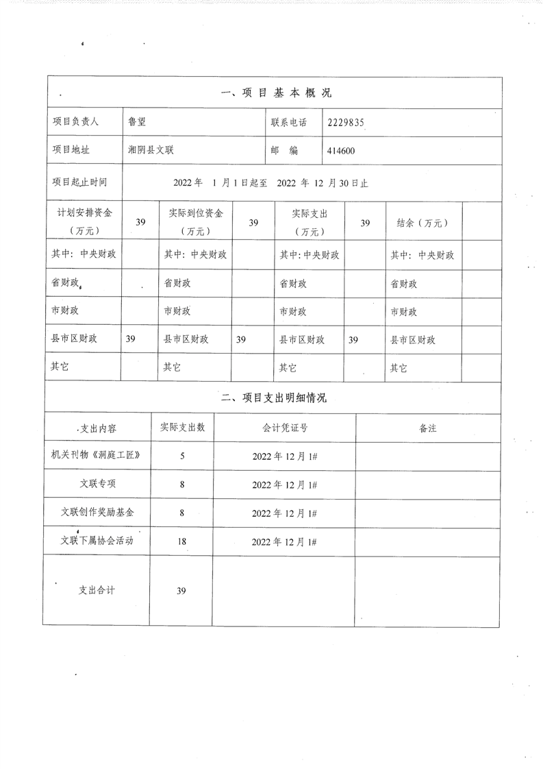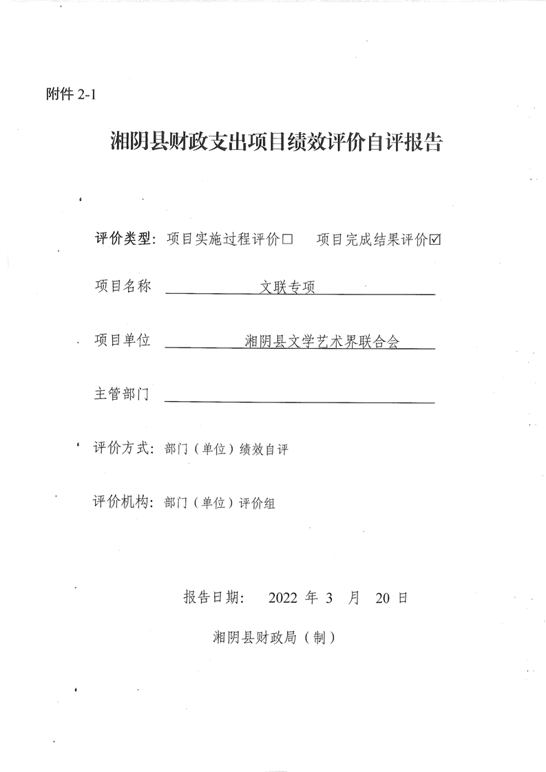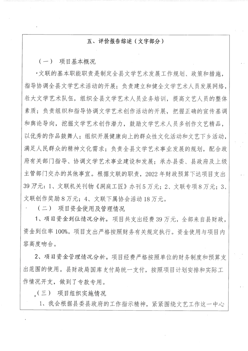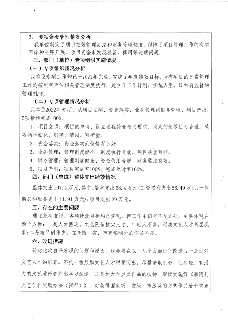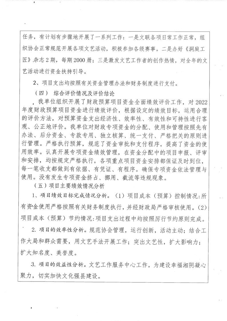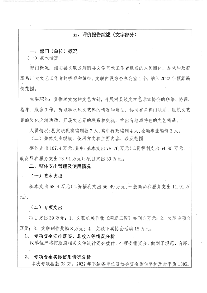 2022年度-湘阴县文联-整体和项目支出绩效评价自评报告