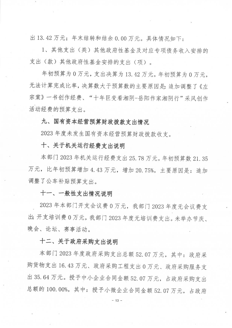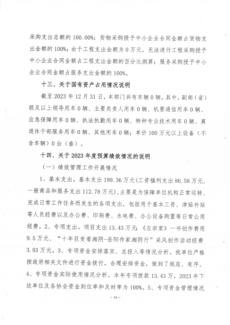 2023年-湘阴县文学艺术界联合会-部门决算公开